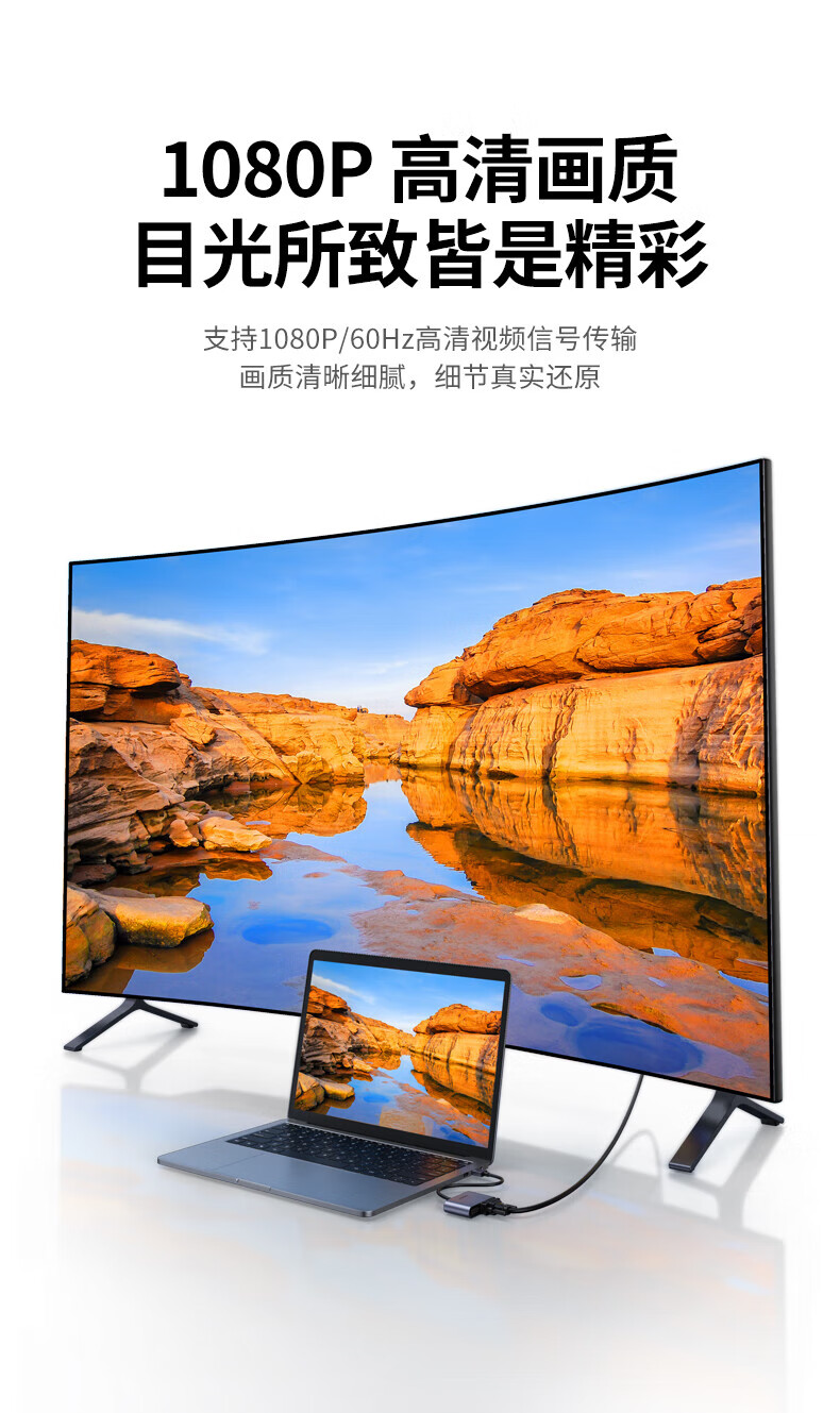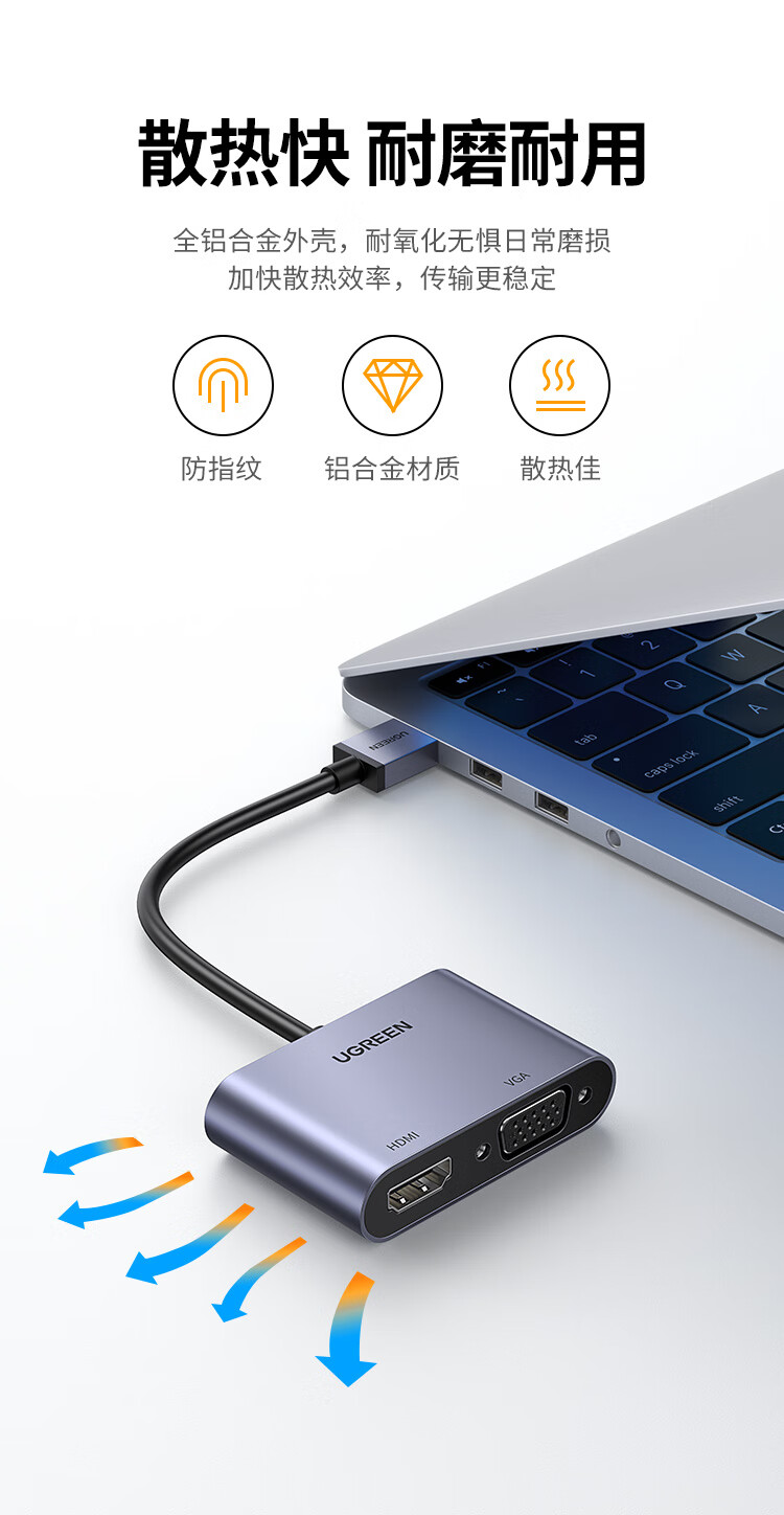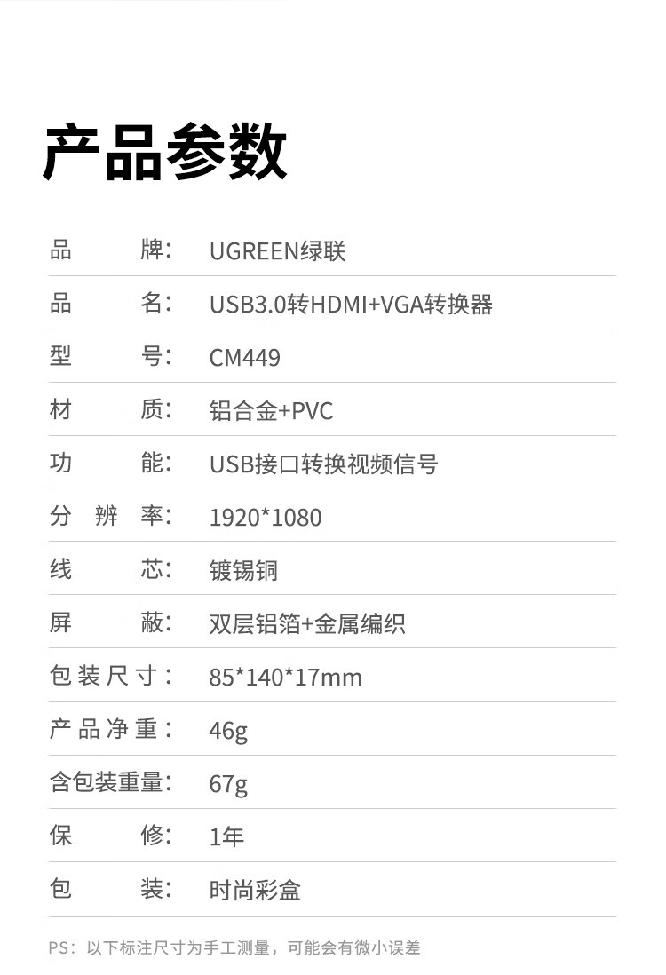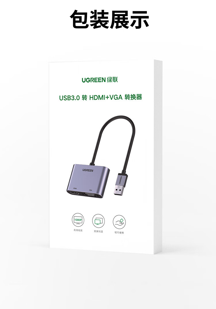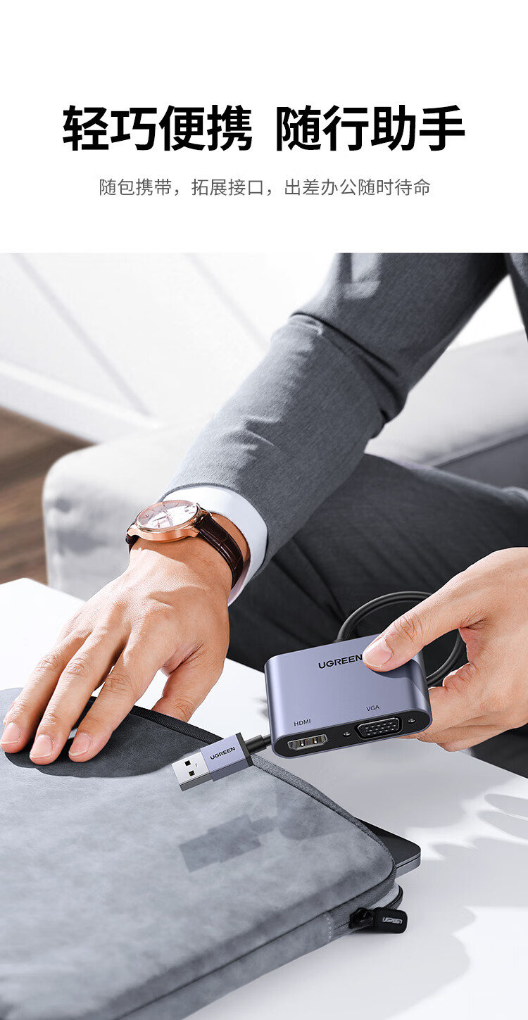 绿联/UGREEN CM449 网络连接设备 USB3.0转HDMI/VGA转换器 扩展坞高清一分二分配器 笔记本电脑外置显卡台式机接电视转接线 20518