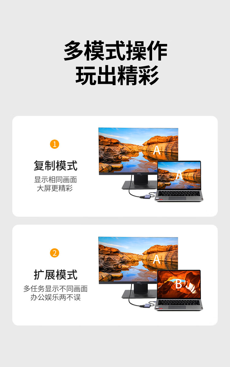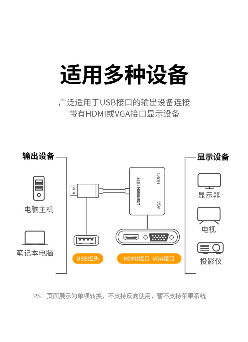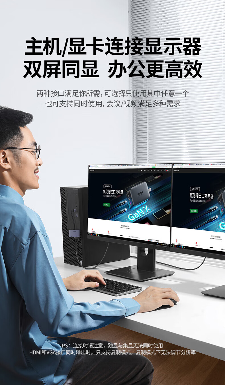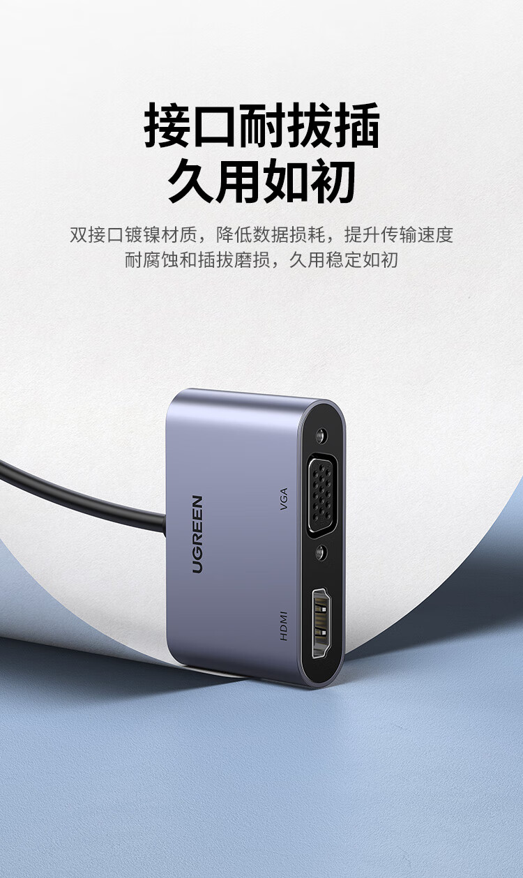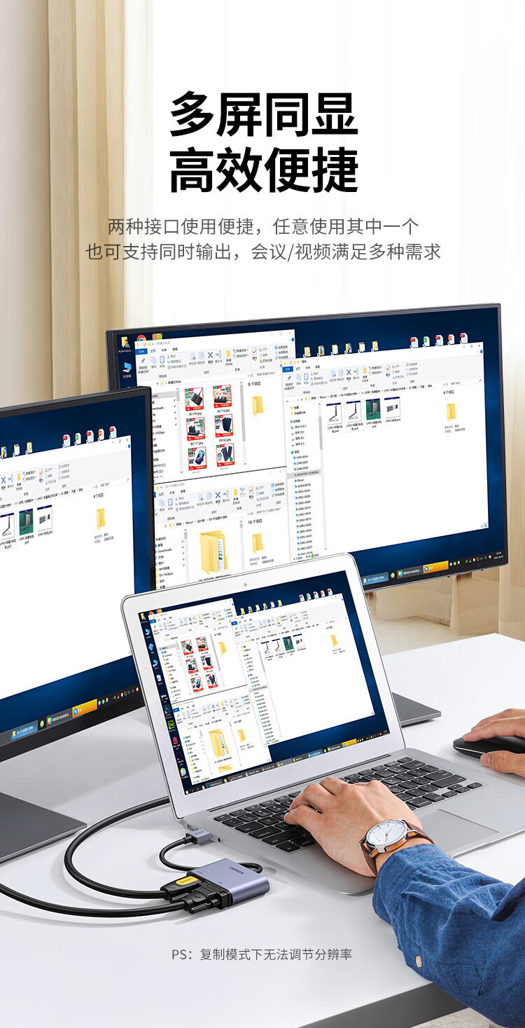 绿联/UGREEN CM449 网络连接设备 USB3.0转HDMI/VGA转换器 扩展坞高清一分二分配器 笔记本电脑外置显卡台式机接电视转接线 20518