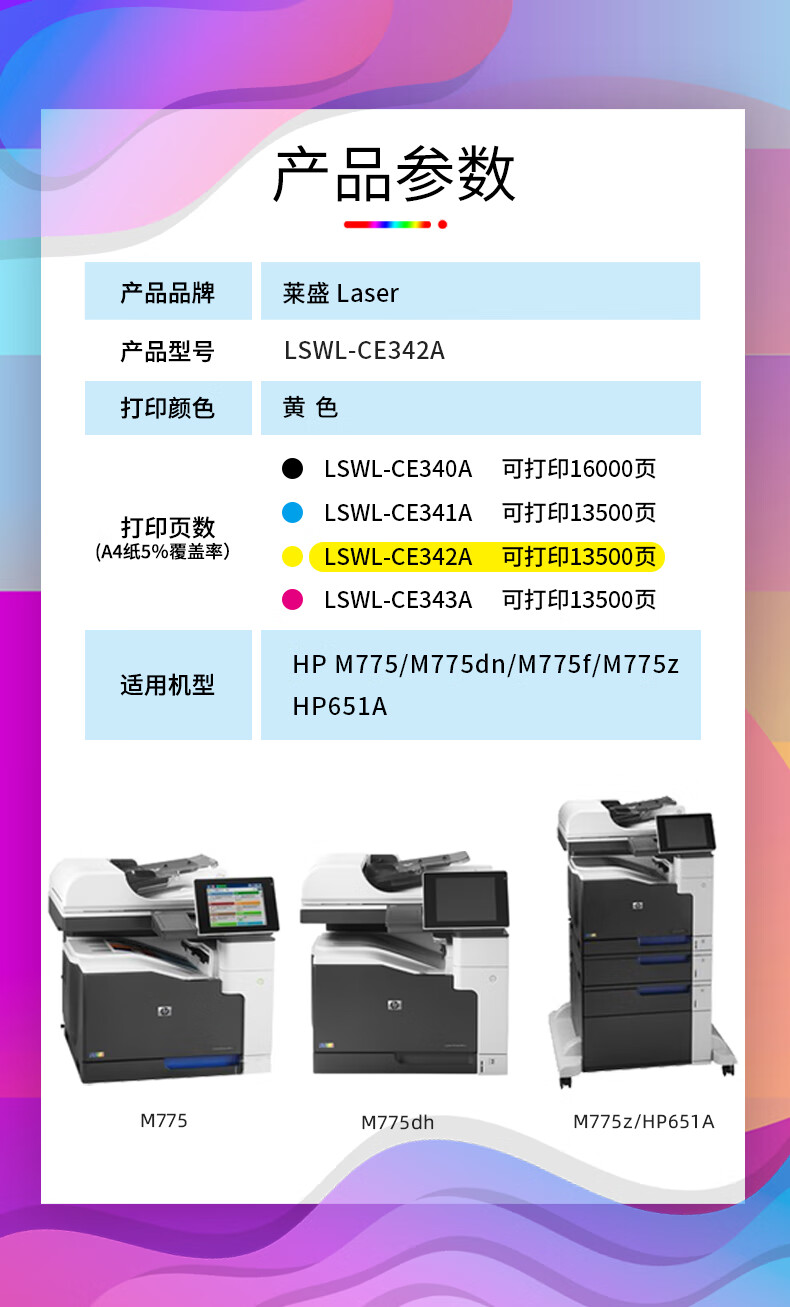 包装清单  :   莱盛LSWL-CE342A黄色硒鼓*1