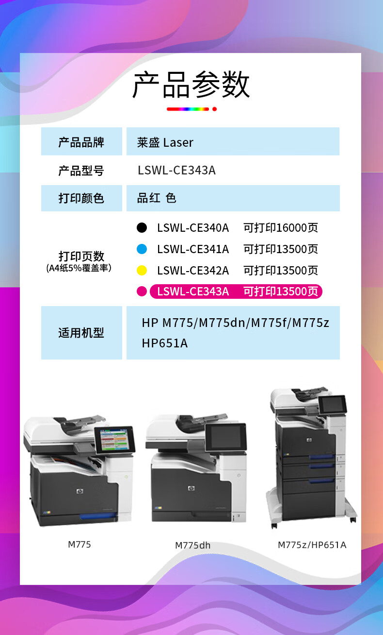 包装清单  :   莱盛LSWL-CE343A红色硒鼓*1