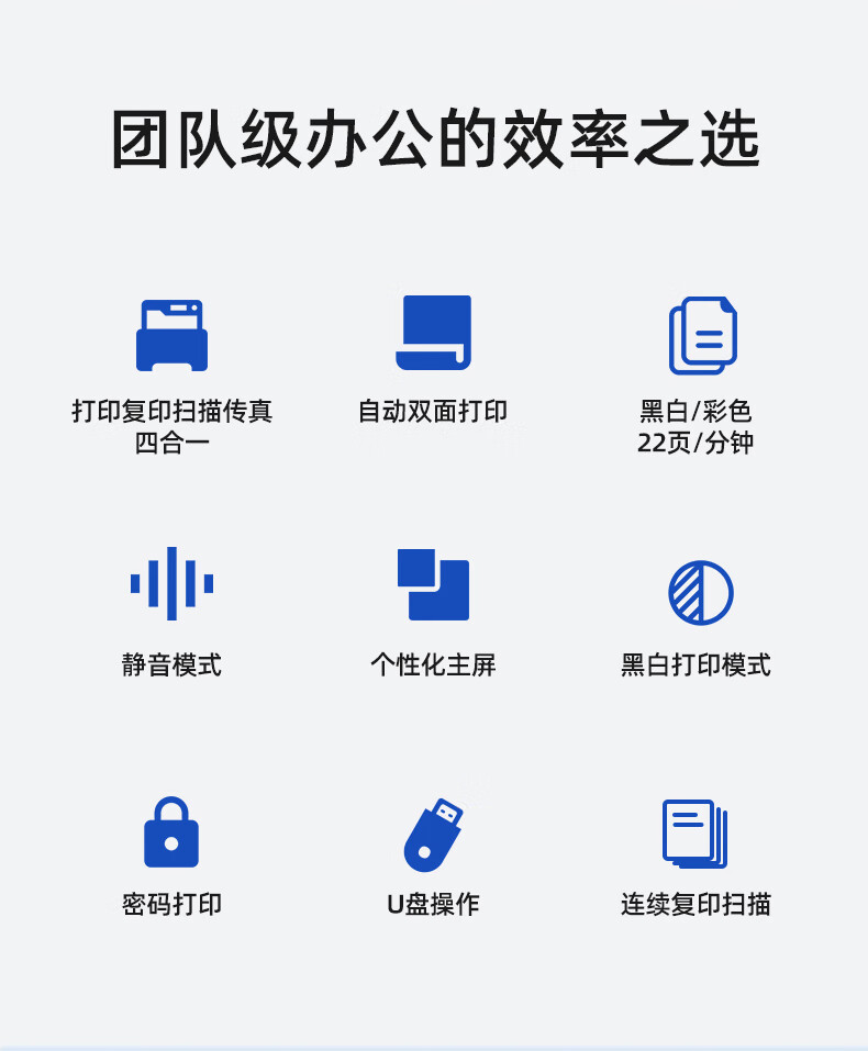 黑白打印速度(页/分钟 ppm)  :   22