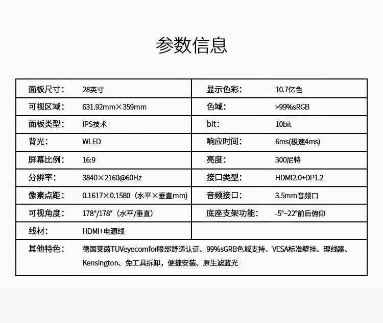 屏幕尺寸(英寸)  :   28