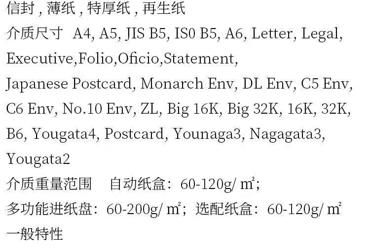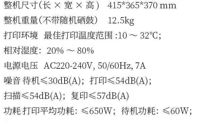 打印类型  :   黑白激光