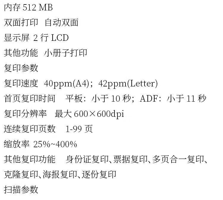 黑白打印速度(页/分钟 ppm)  :   40