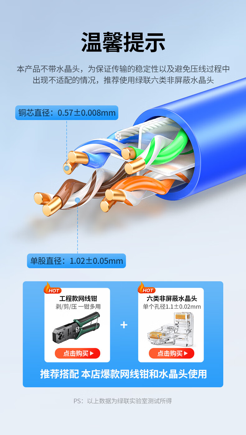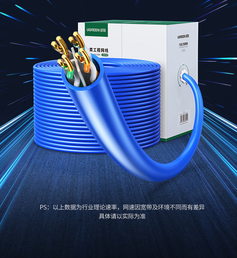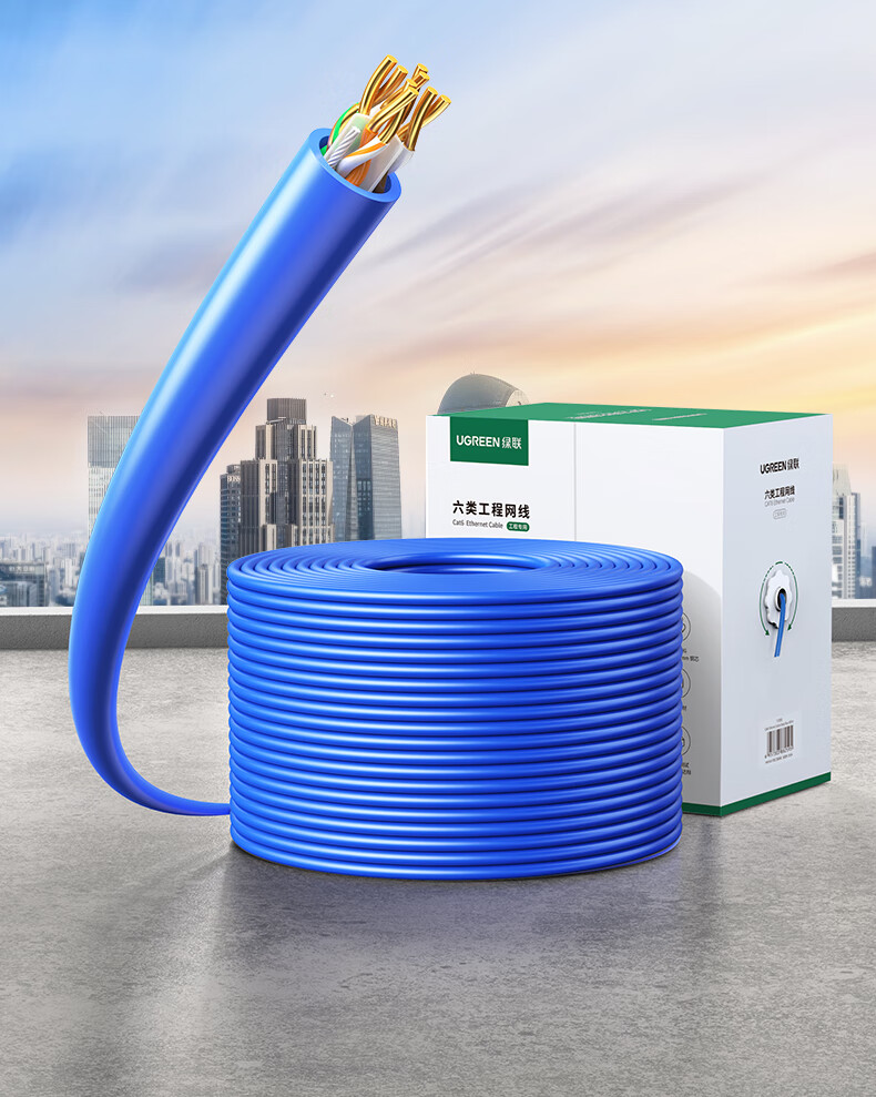 绿联/UGREEN NW109 网络连接设备 六类千兆工程网线【0.57±0.008mm纯铜线芯】CAT6类非屏蔽双绞线 家装监控网络POE箱线305米 11259