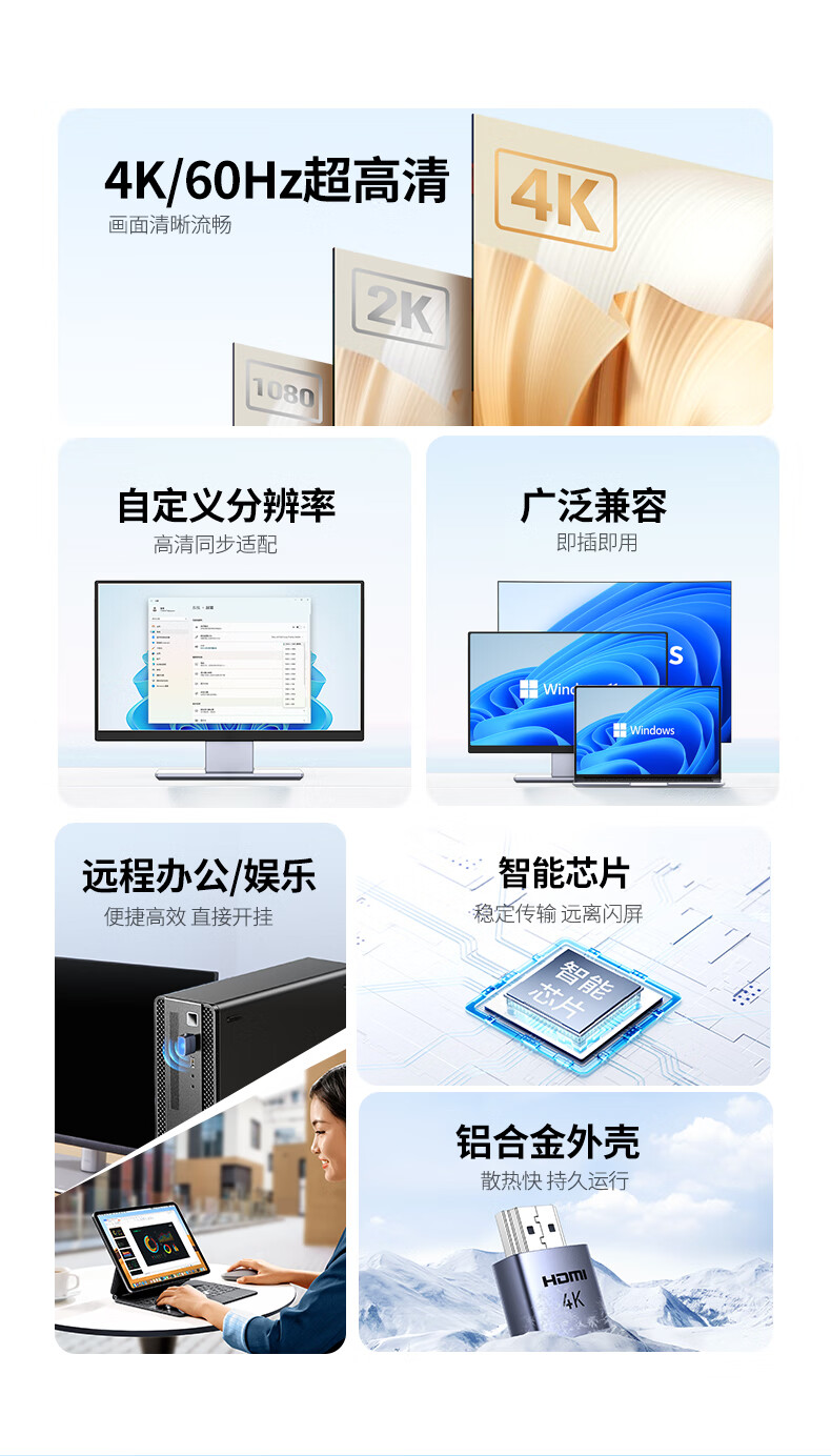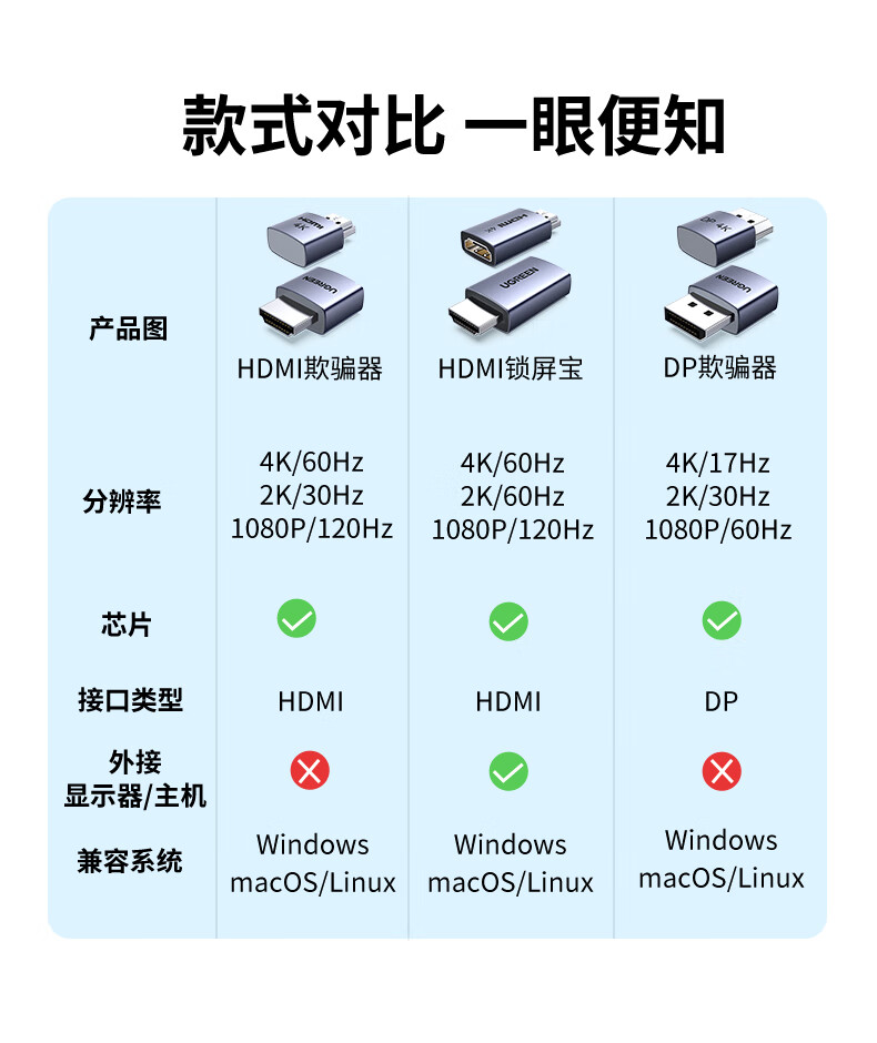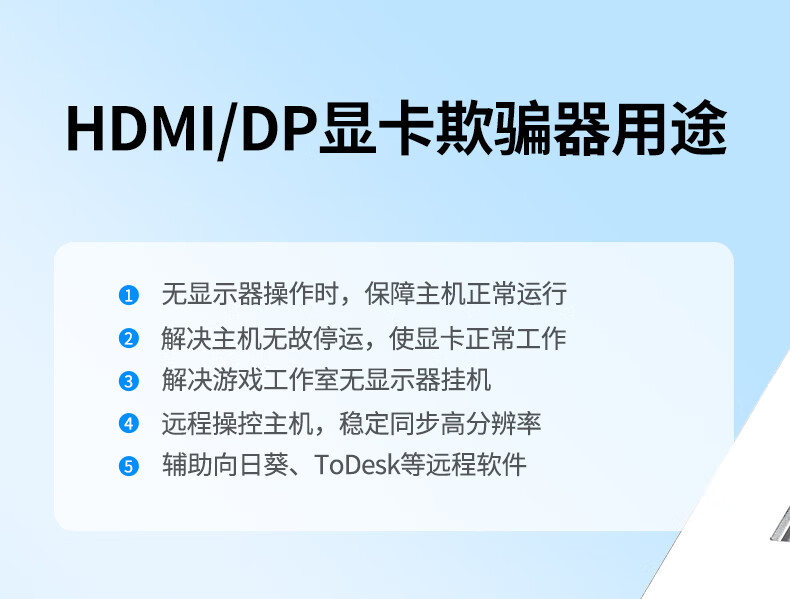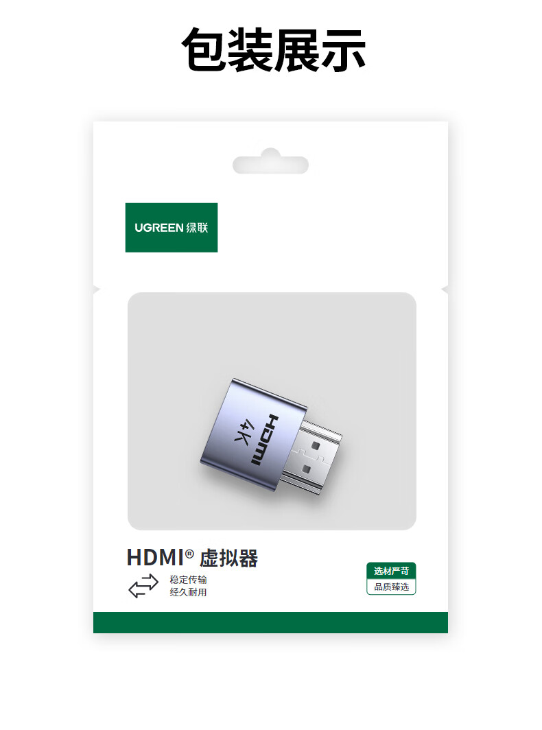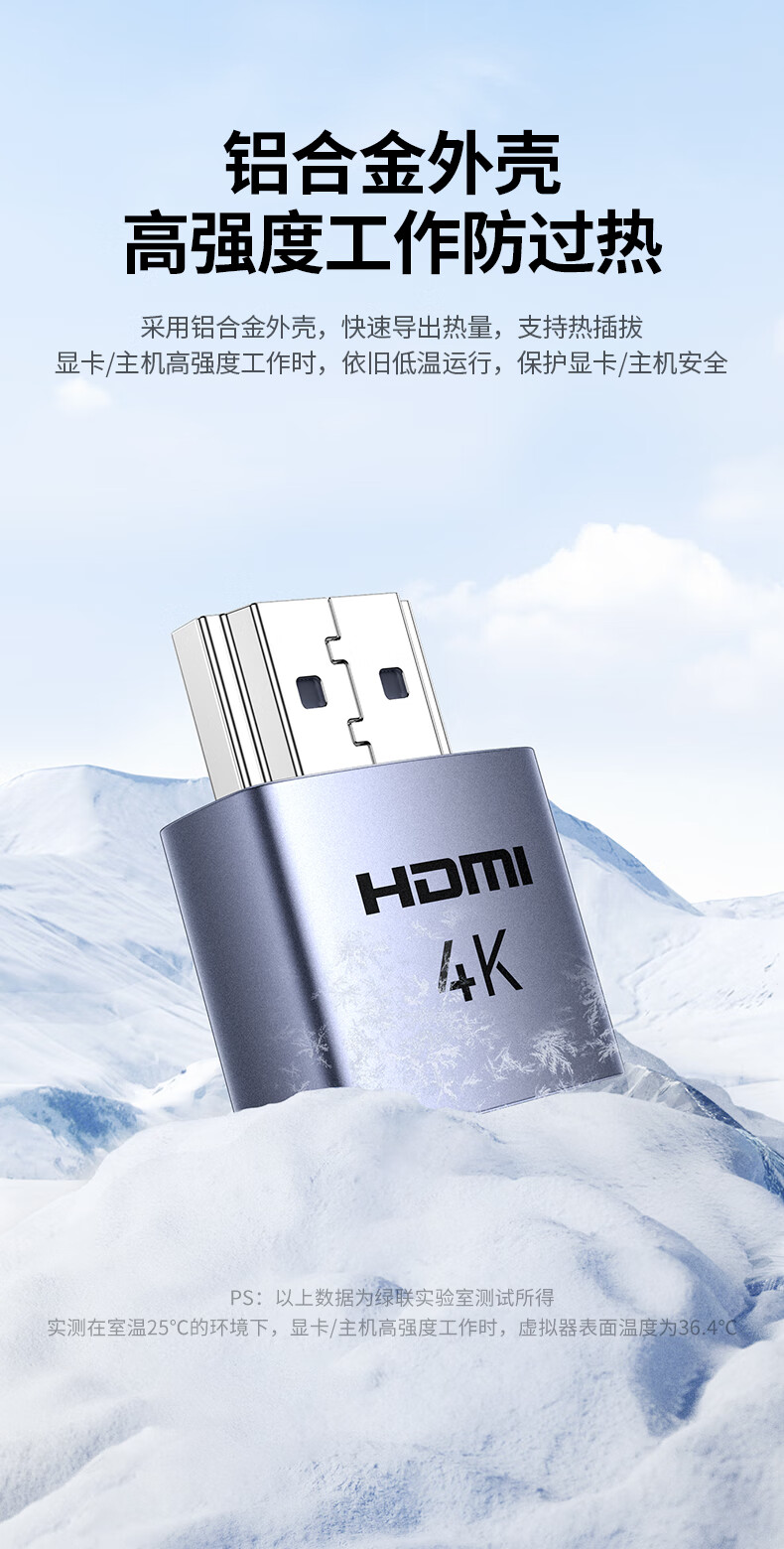 绿联/UGREEN CM775 网络连接设备 )HDMI显卡欺骗器锁屏宝 DP虚拟显示器诱骗器 HDMI接口假负载 虚拟屏幕测试4K分辨率 负载游戏工作室 HDMI显卡欺骗器