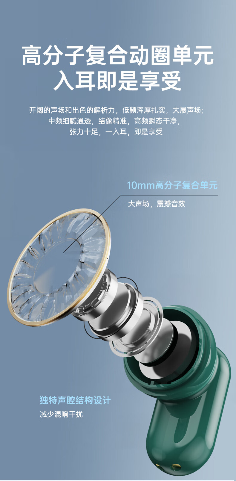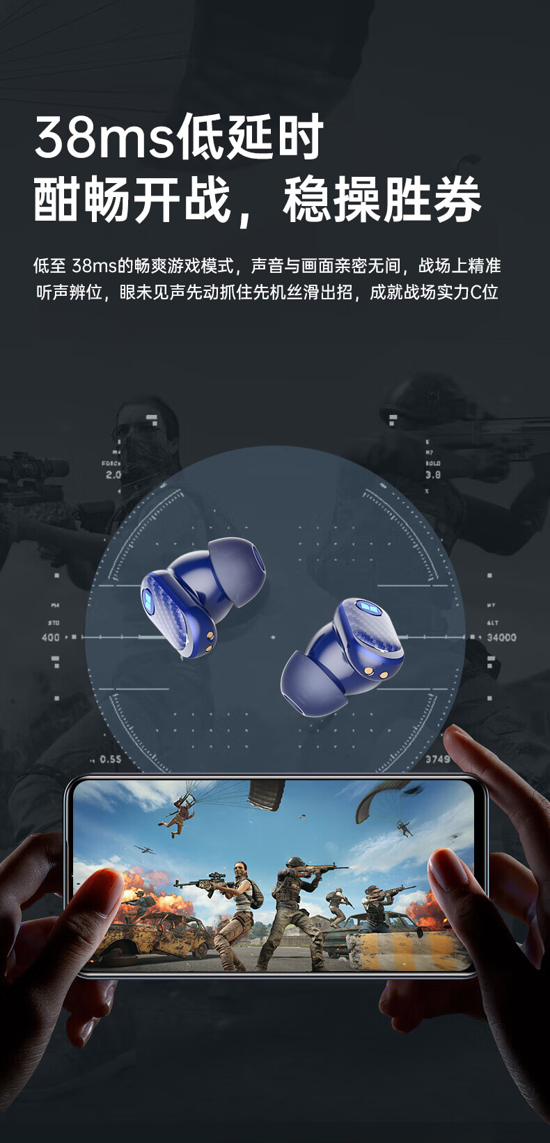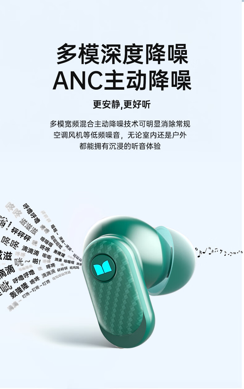 包装清单  :   蓝牙耳机2025新款入耳式主动降噪无线长续航音乐电竞游戏运动适用华为小米 XKT19绿色 主动降噪