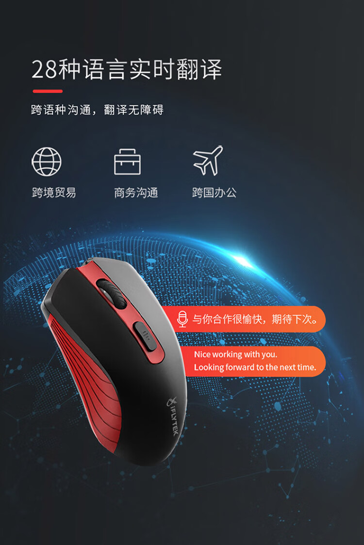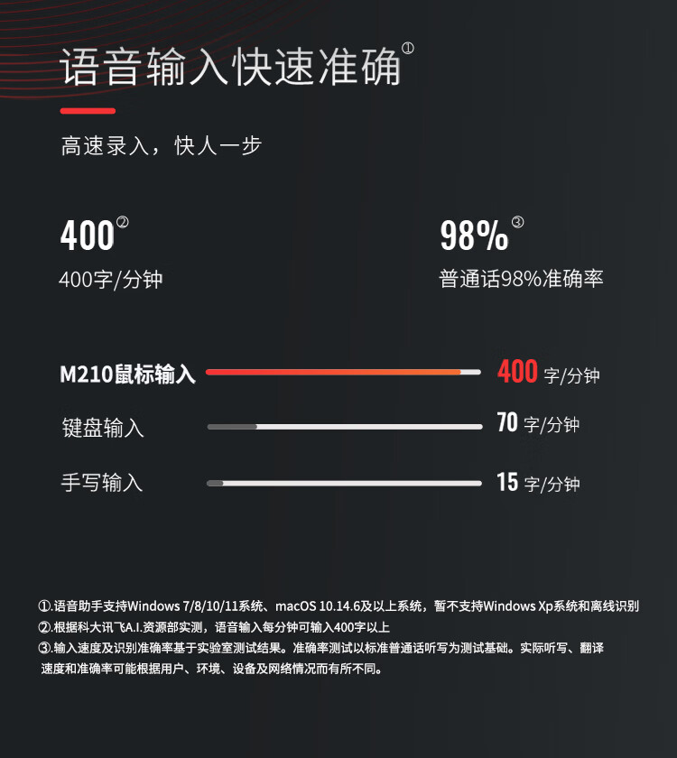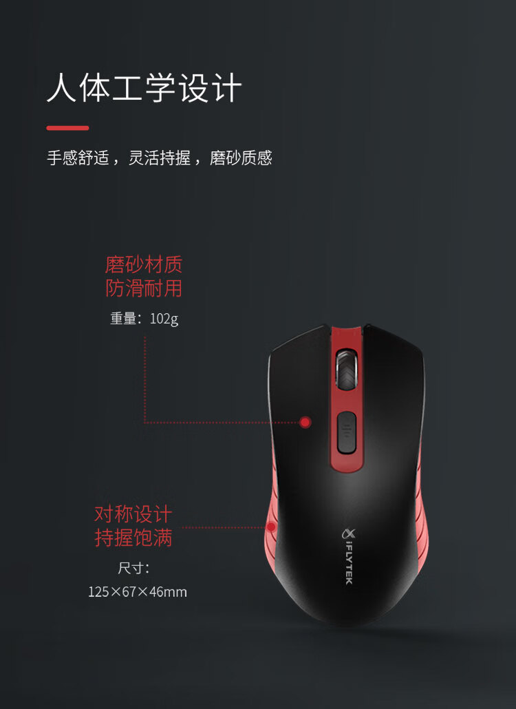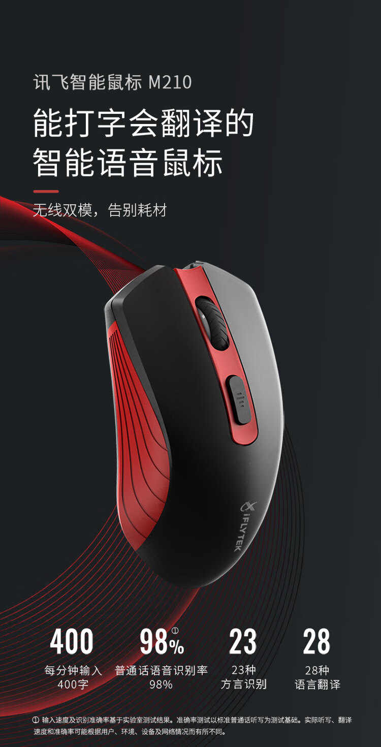 科大讯飞无线蓝牙鼠标M210 办公鼠标 无线外设 人体工学鼠标 舒适握感 智能语音输入打字翻译 黑红