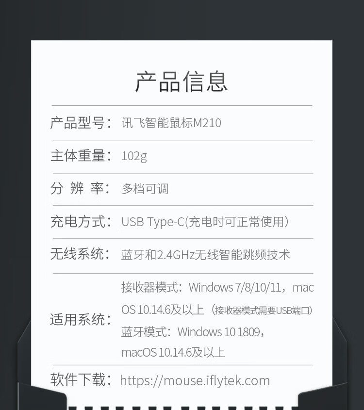包装清单  :   无线蓝牙鼠标M210 办公鼠标 无线外设 人体工学鼠标 舒适握感 智能语音输入打字翻译 黑红