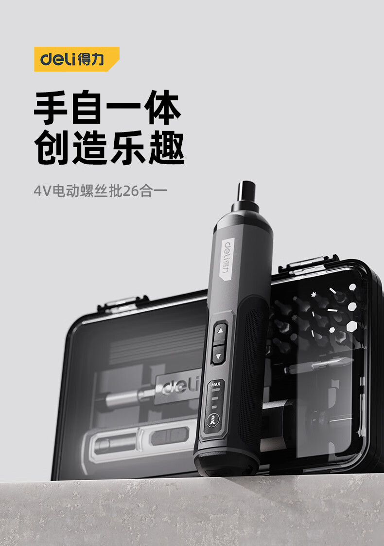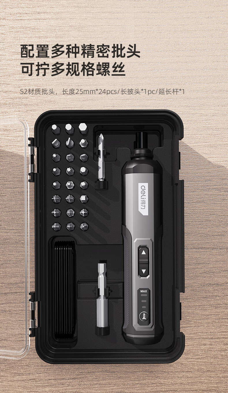 得力(deli)电动螺丝刀充电式家用小型迷你电动螺丝起子带25批头套装