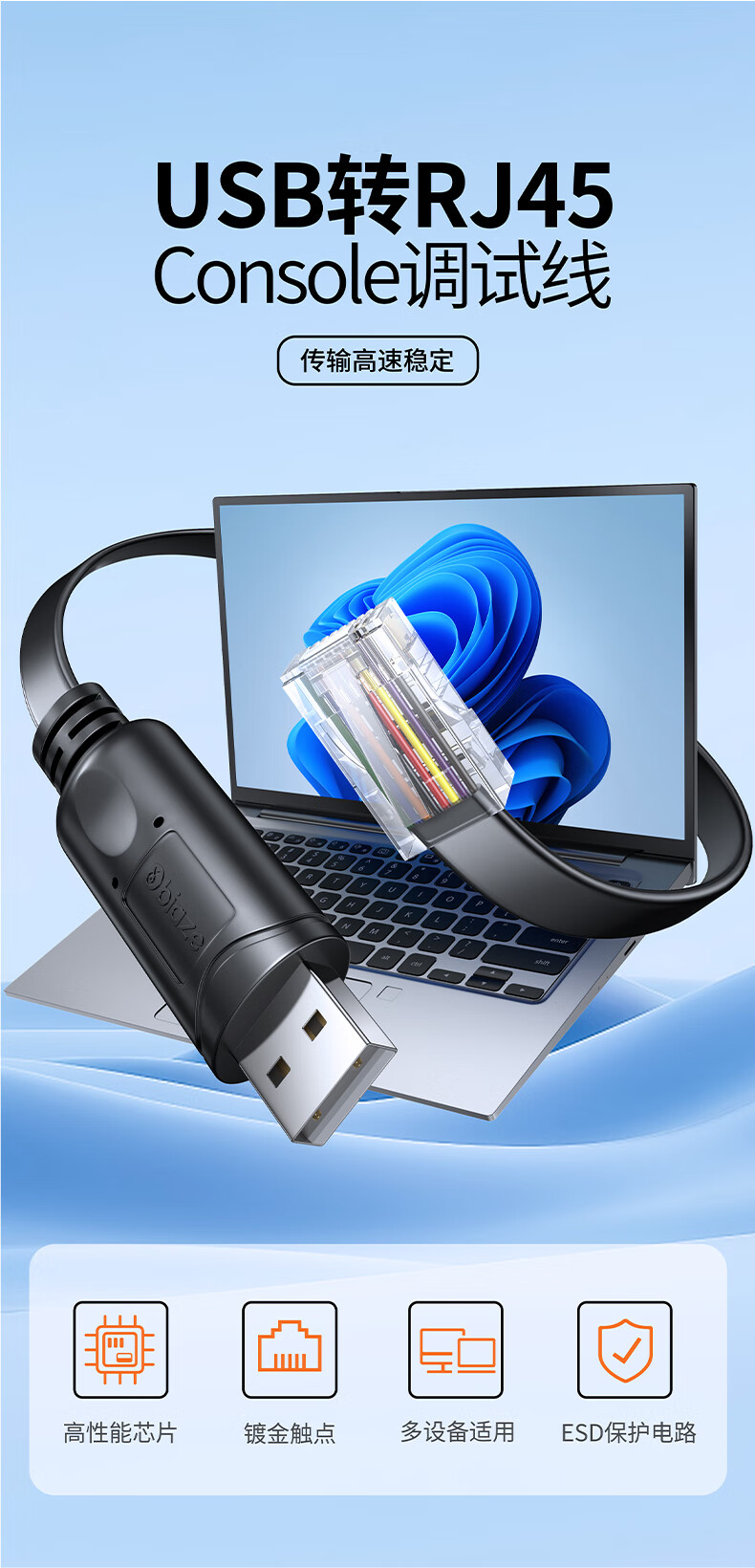 毕亚兹 USB转console调试线 rj45线h3c配置线 适用腾达H3CTP-LINK交换机路由器 5米