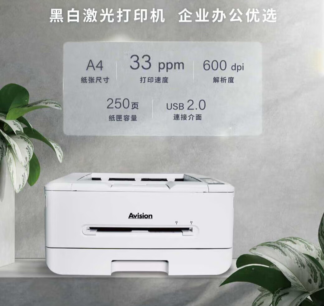 虹光(Avision)AP33DW 黑白激光A4高速自动双面打印机每分钟33页支持国产操作系统