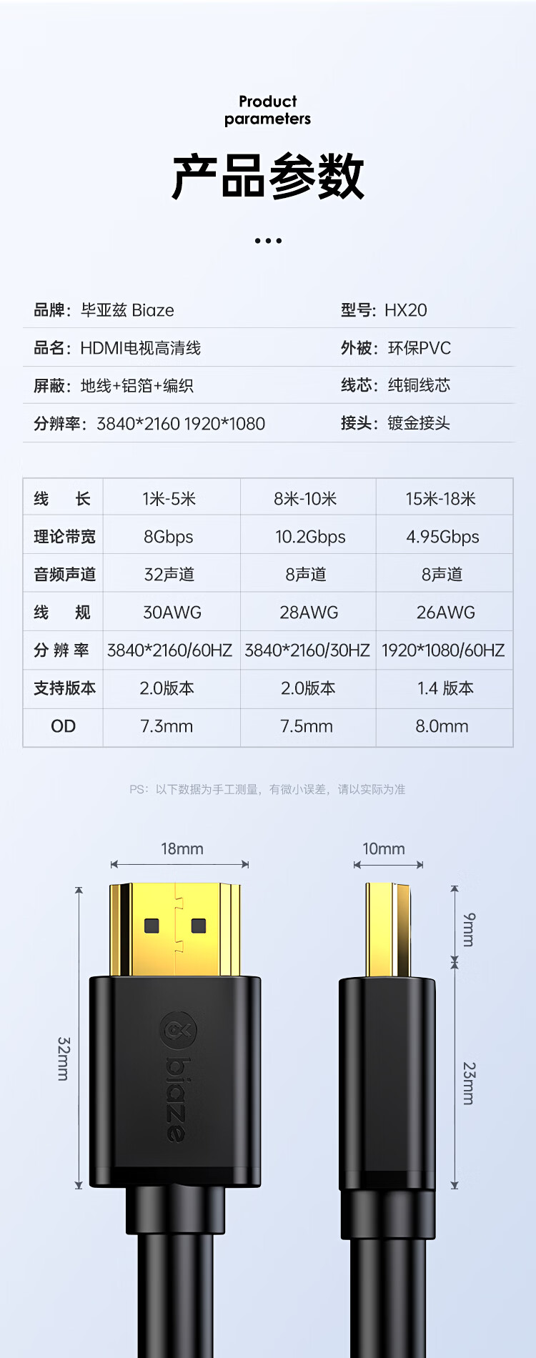 包装清单  :   HDMI线2.0版3米(HX20-3M)*1 保修卡*1 包装*1