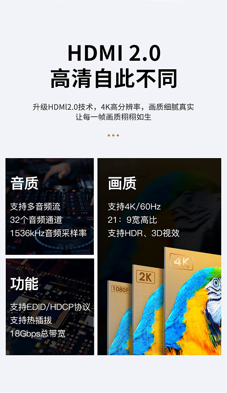 毕亚兹 HDMI线2.0版电脑电视4K高清线 3D视频线 机顶盒投影仪显示器连接线