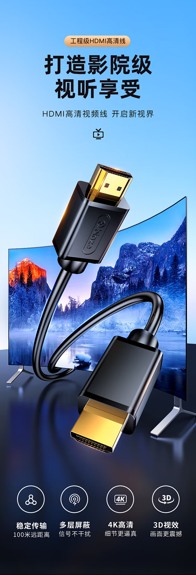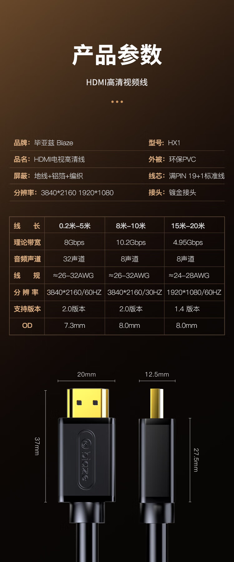 毕亚兹 HDMI线2.0版电脑电视4K高清线 3D视频线 机顶盒投影仪显示器连接线0.5米