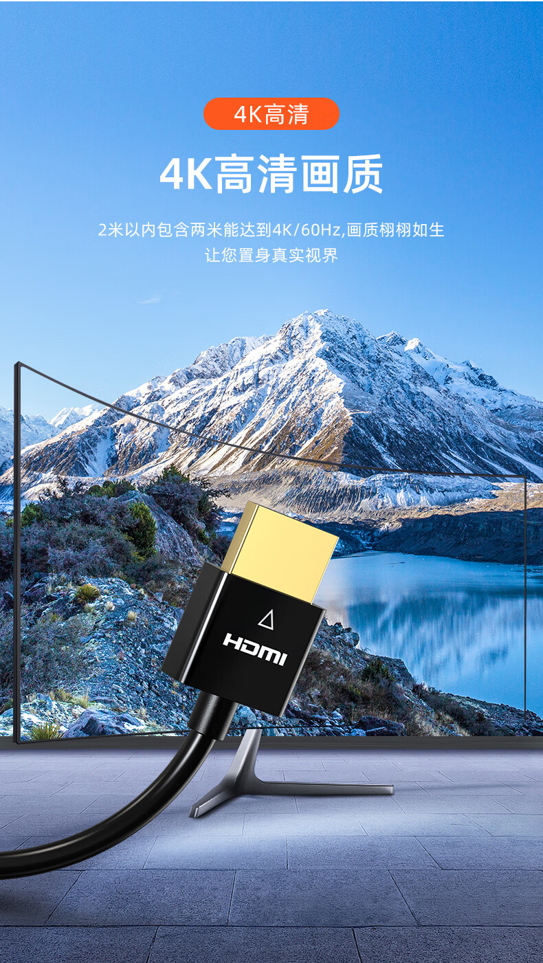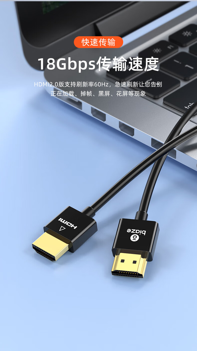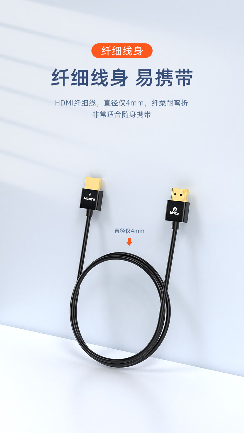 毕亚兹HDMI线2.0版4K数字高清线3D视频线 笔记本电脑机顶盒接显示器投影仪连接线 细线 超细2.0高清线【4K60HZ】 10米
