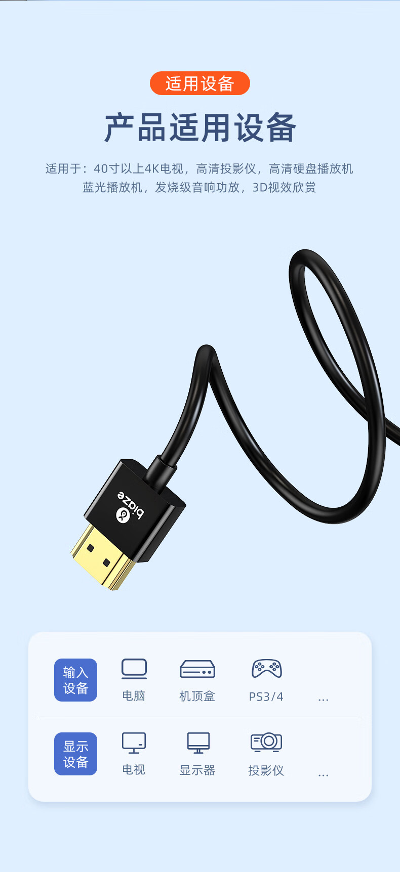 包装清单  :   毕亚兹HDMI线2.0版4K数字高清线3D视频线10米