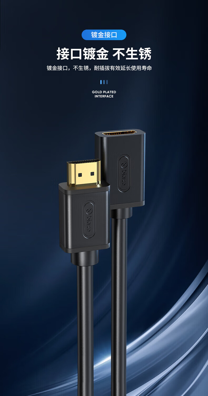 毕亚兹HDMI延长线2.0版短线4K数字高清线公对母20厘米 3D视频线电脑电视盒子机顶盒接显示器连接线 HX2 4K60Hz高清2.0版HDMI延长线 0.5米