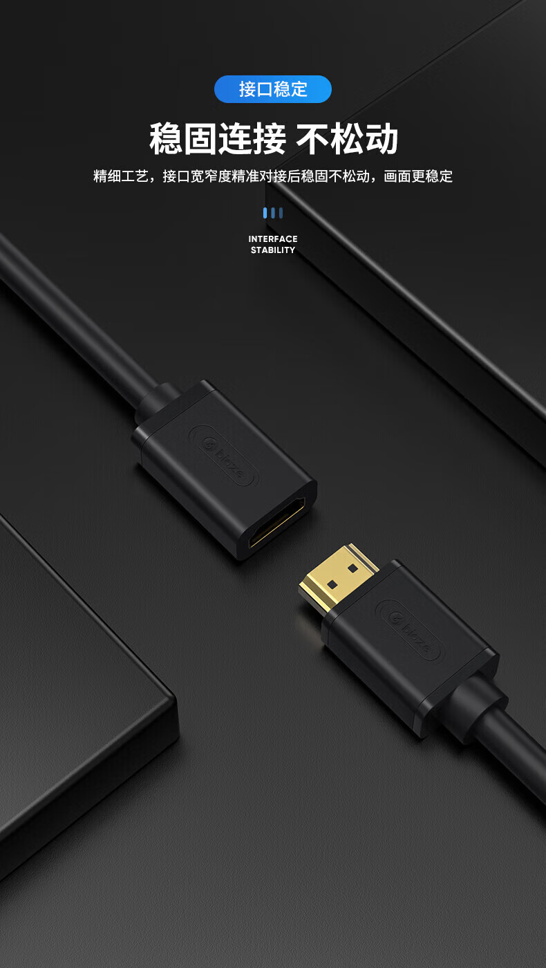 毕亚兹HDMI延长线2.0版短线4K数字高清线公对母20厘米 3D视频线电脑电视盒子机顶盒接显示器连接线 HX2 4K60Hz高清2.0版HDMI延长线 1米