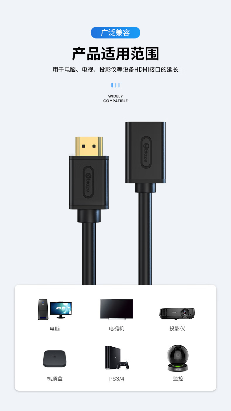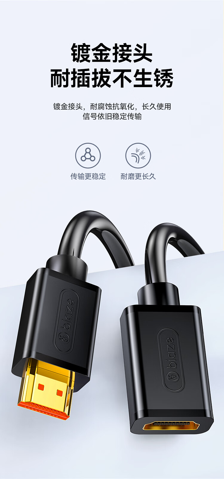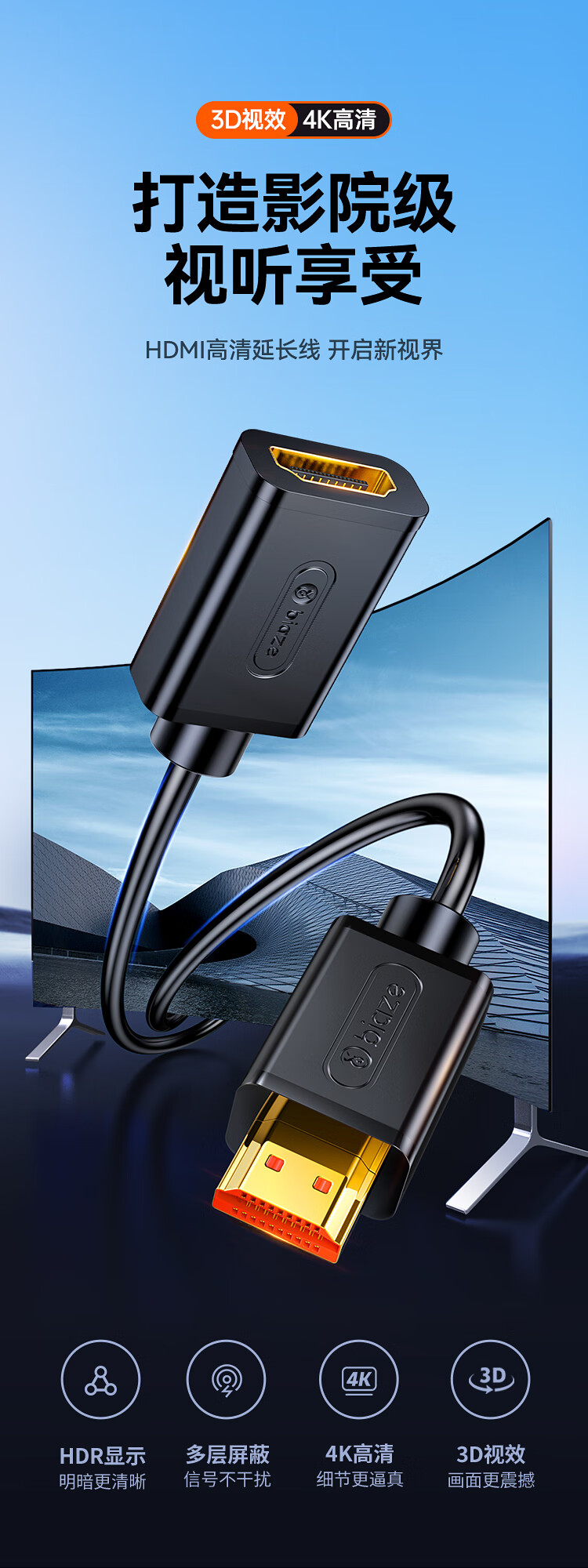 毕亚兹 HDMI线延长线公对母 5米 数字高清线3D视频线 2K*4K/60HZ 笔记本电脑接投影仪数据连接线