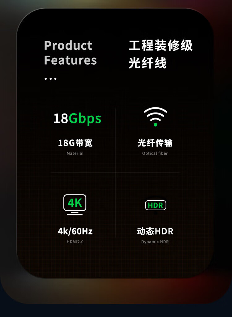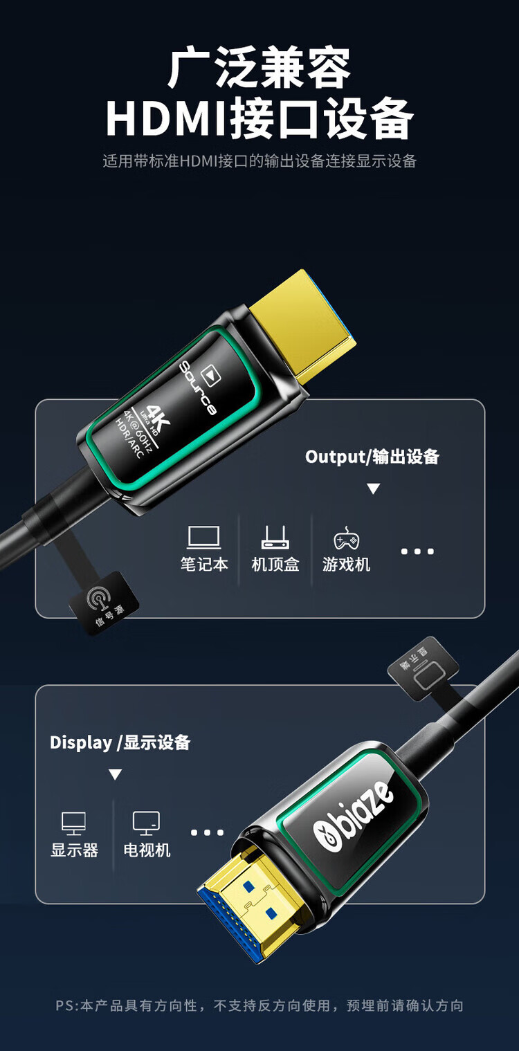 包装清单  :   光纤HDMI线2.0版 4K发烧级高清线 电脑电视投影仪家庭影院3D视频连接线 光纤HDMI线【4K60Hz】工程款 【10米】