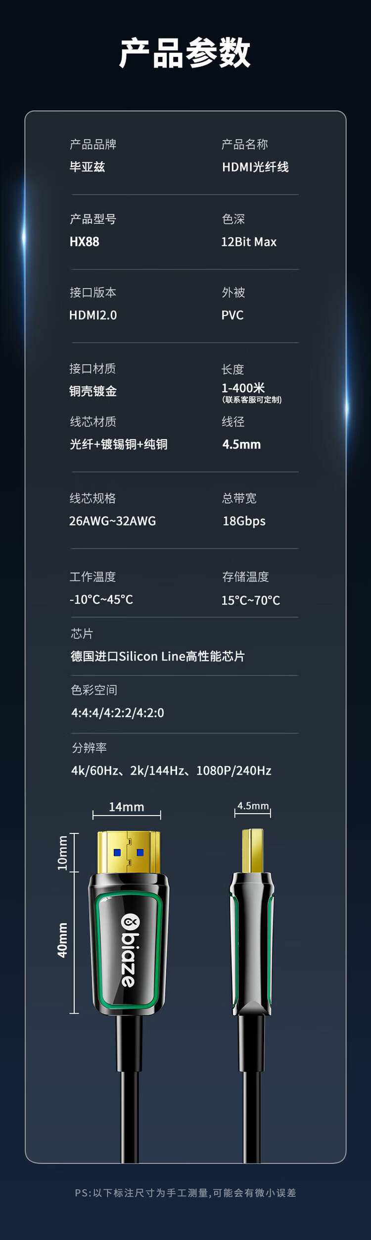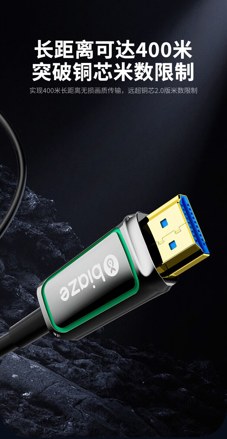 毕亚兹 BIAZE 光纤HDMI线2.0版 4K发烧级高清线 电脑电视投影仪家庭影院3D视频连接线 5米 HX88 光纤HDMI线【4K60Hz】工程款 【10米】