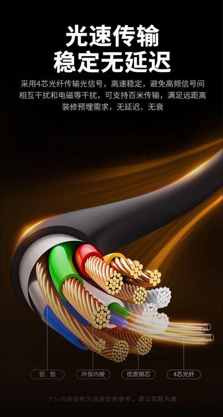 包装清单  :   HDMI光纤线2.1版 30米 8K60Hz发烧级高清线电脑电视投影IMAX家庭影院数字3D工程装修连接线 8K60/4K120HZ光纤hdmi2.1版 HX125-2米