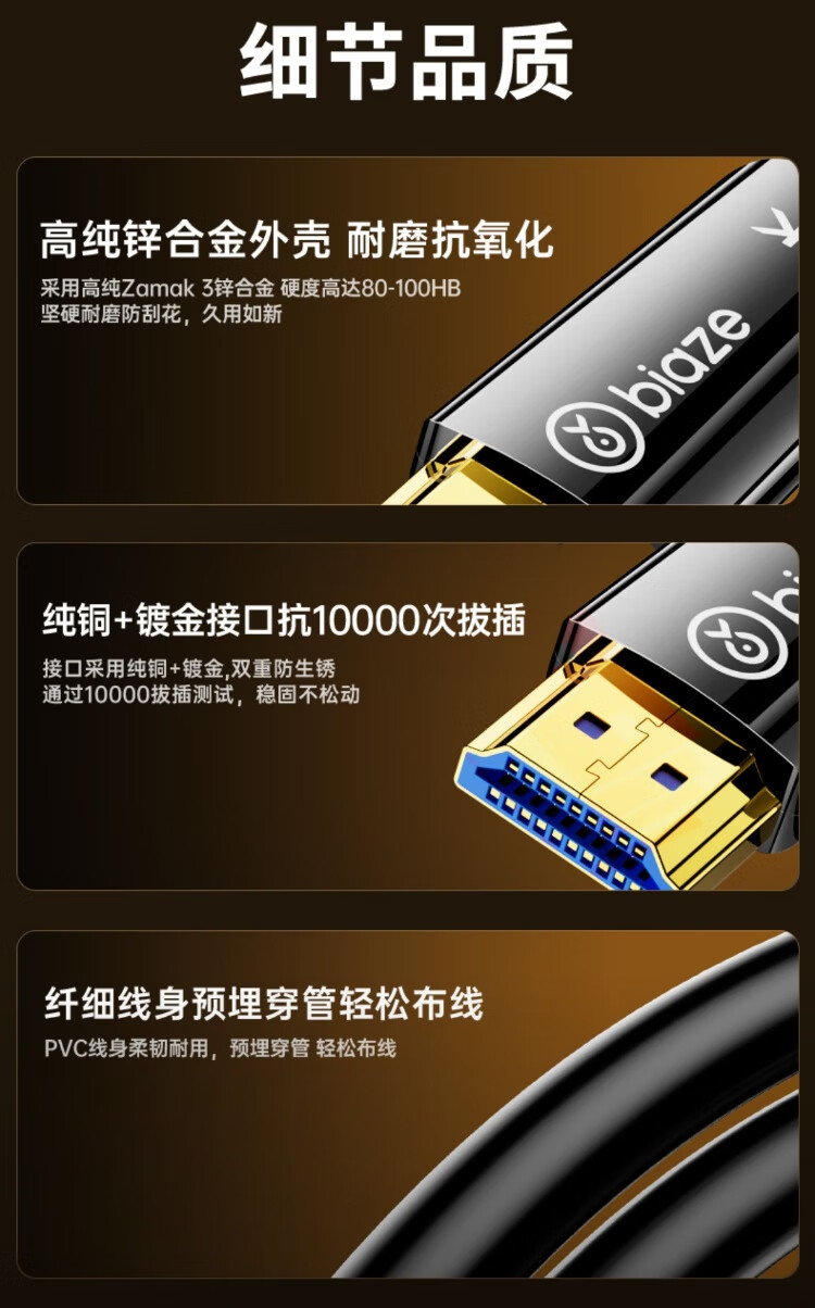 毕亚兹 HDMI光纤线2.1版 30米 8K60Hz发烧级高清线电脑电视投影IMAX家庭影院数字3D工程装修连接线 8K60/4K120HZ光纤hdmi2.1版 HX125-2米