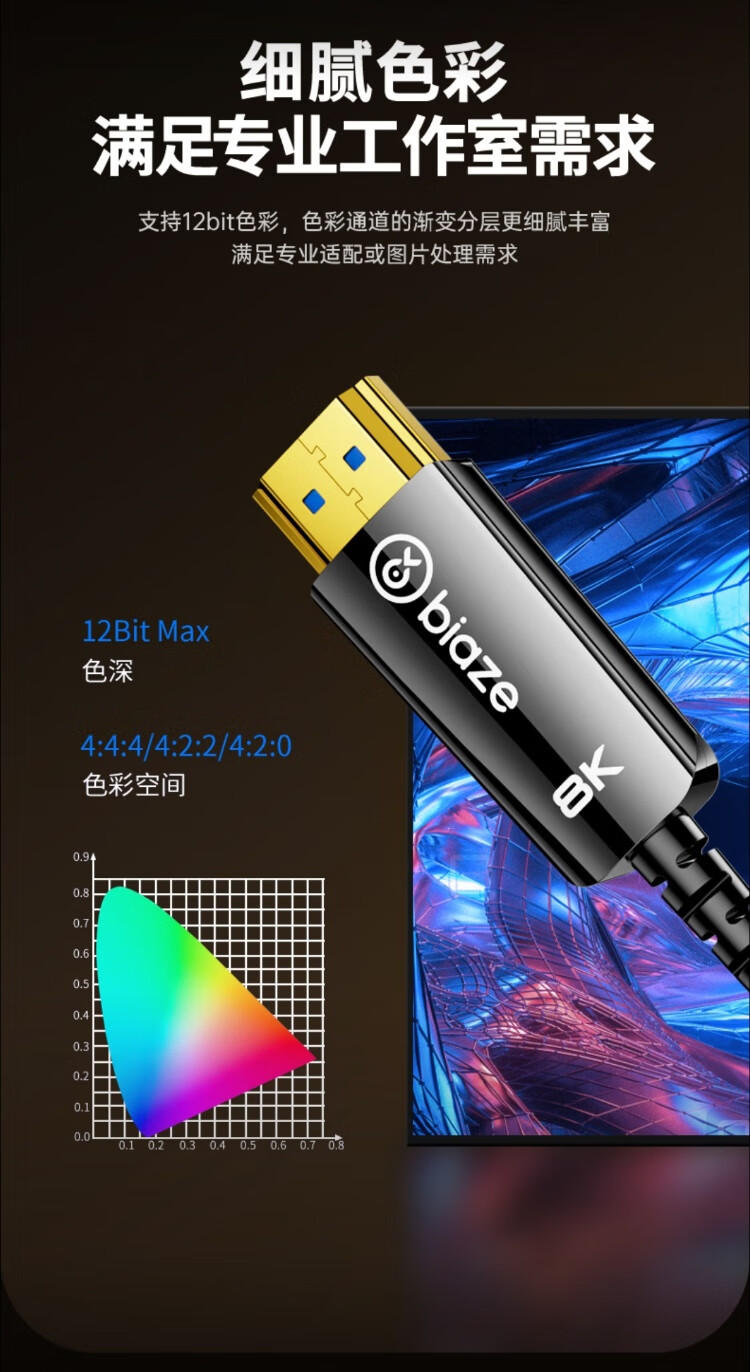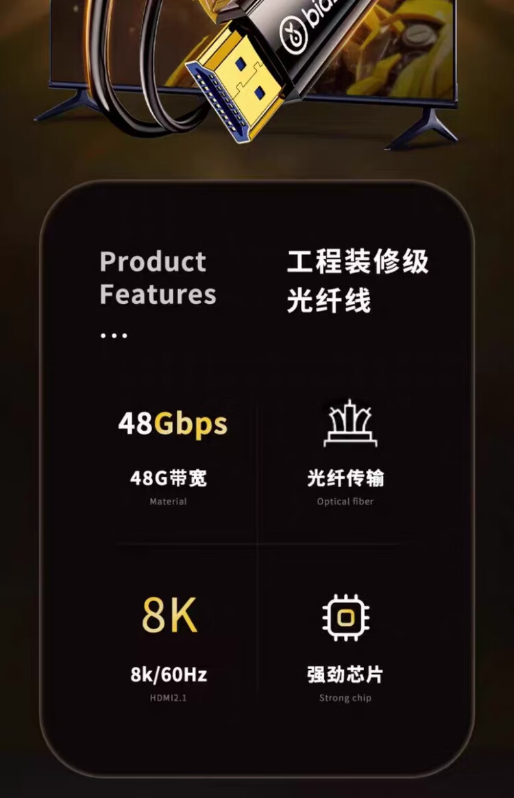 包装清单  :   HDMI光纤线2.1版 30米 8K60Hz发烧级高清线电脑电视投影IMAX家庭影院数字3D工程装修连接线 8K60/4K120HZ光纤hdmi2.1版 HX125-10米