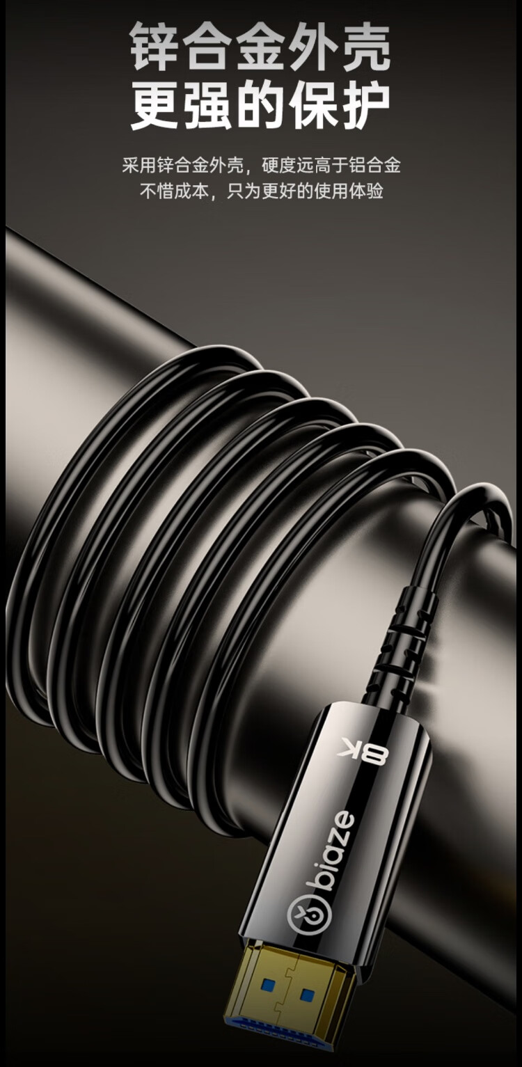 毕亚兹 HDMI光纤线2.1版 30米 8K60Hz发烧级高清线电脑电视投影IMAX家庭影院数字3D工程装修连接线 8K60/4K120HZ光纤hdmi2.1版 HX125-10米