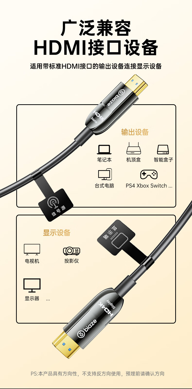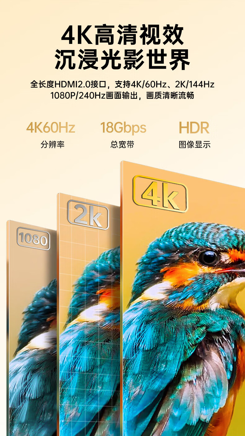 包装清单  :   光纤HDMI线2.0版 4K60Hz发烧级高清线 电脑连接电视投影仪显示器3D视频线工程装修连接线HX112 光纤HDMI线【4K60Hz】合金款 5米