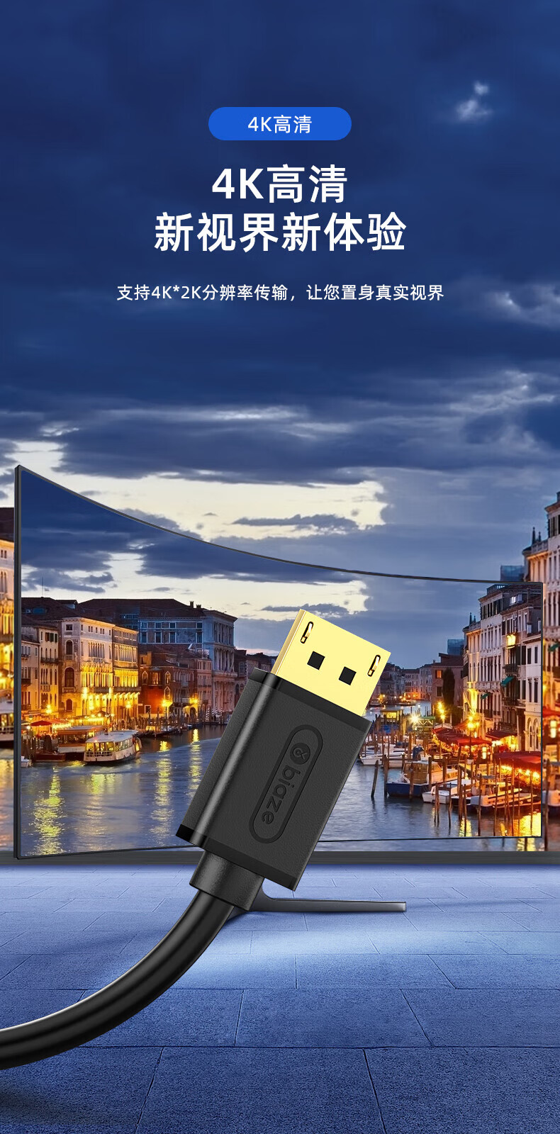 毕亚兹 DP线1.2版 4K60HZ高清公对公2K/144Hz连接线 台式机电脑显卡笔记本连接显示器视频线 HX130-3M DP1.2版高清4K60HZ【办公款】 3米