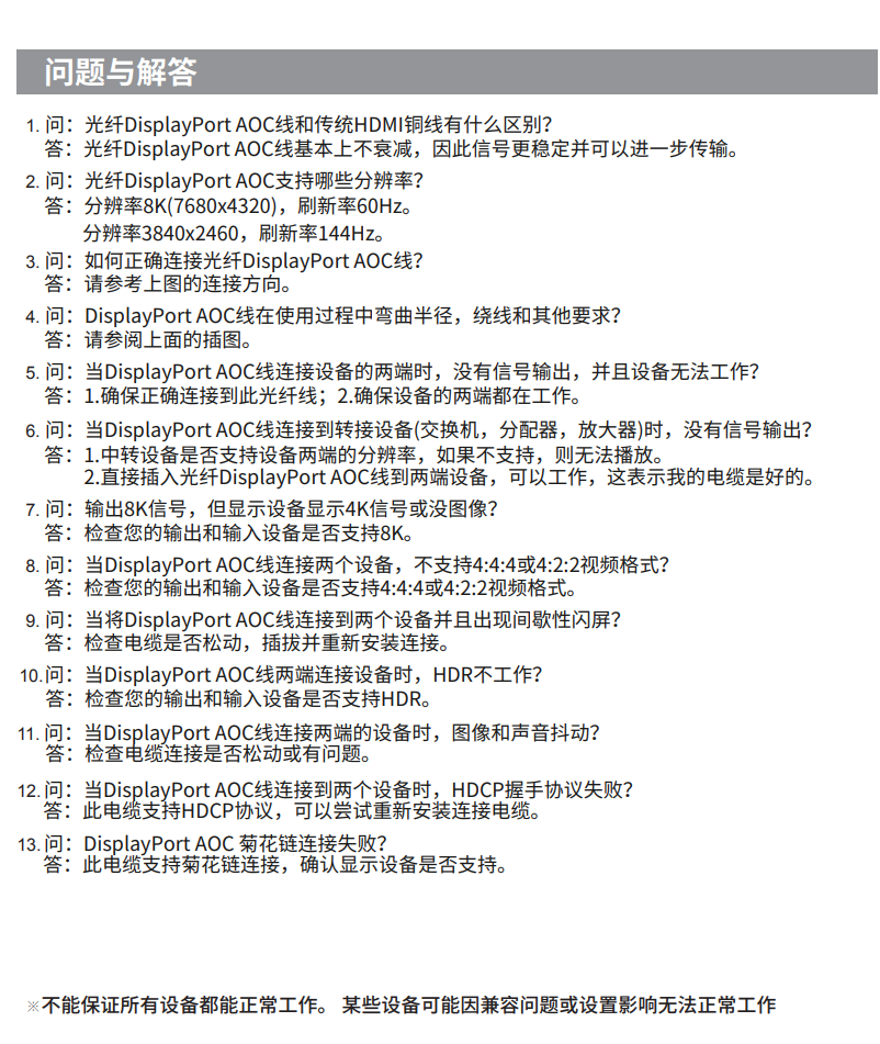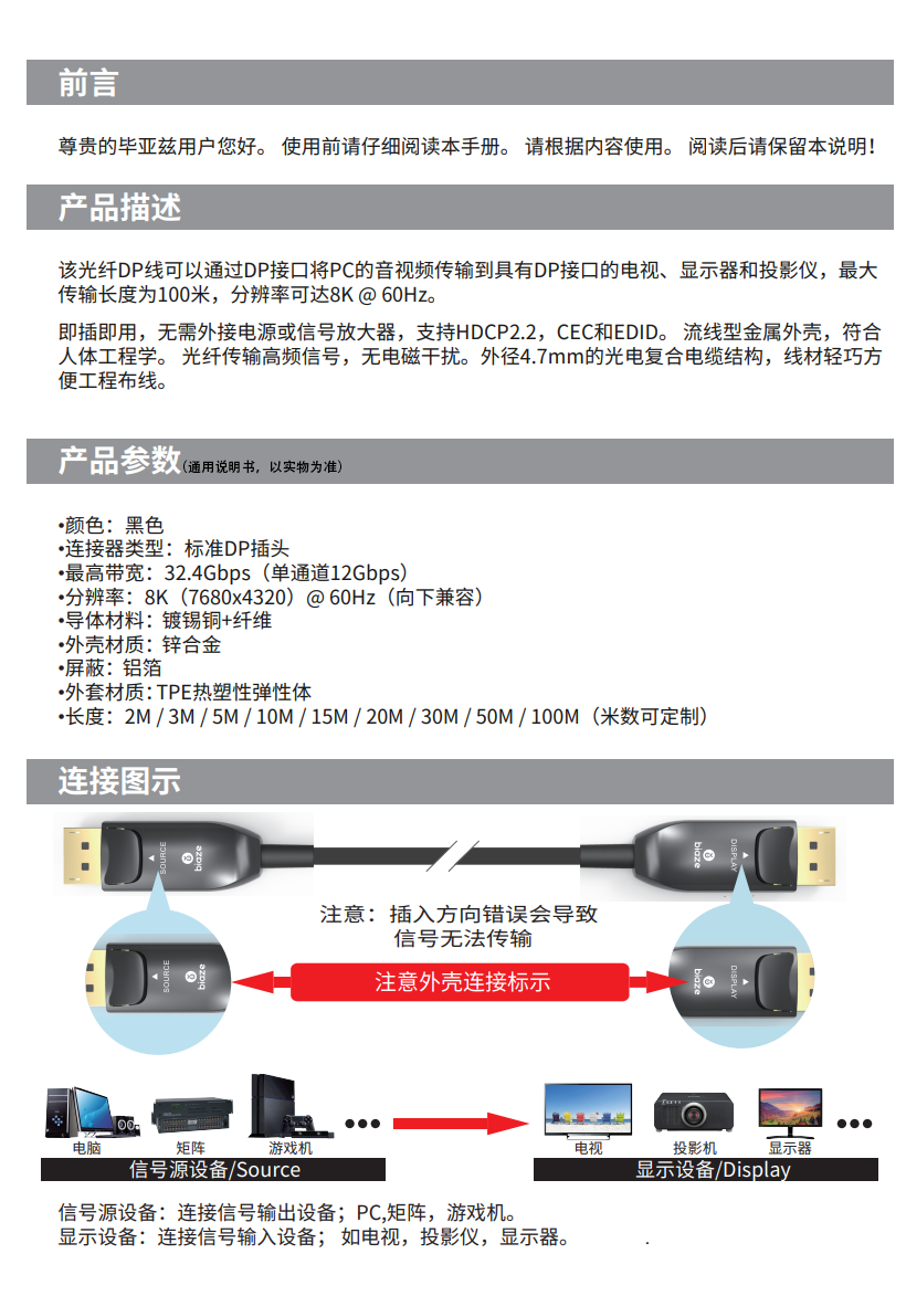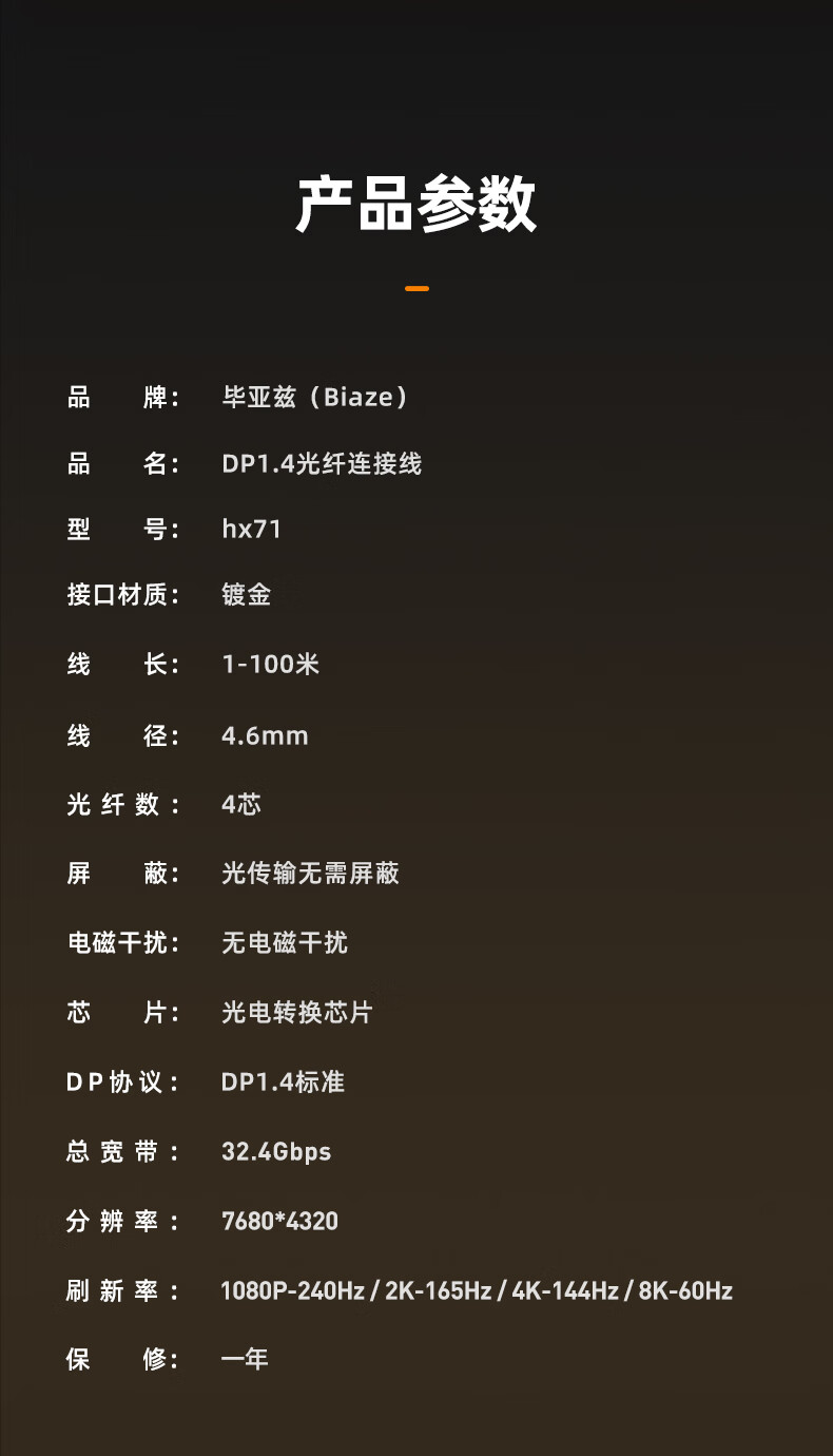 包装清单  :   光纤DP线1.4版 20米 8K数字高清公对公视频连接线165hz/144Hz 电竞电脑主机显示器数据转接线