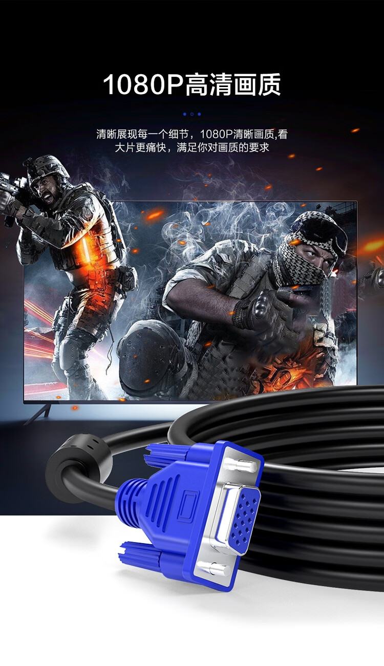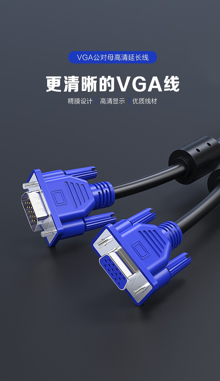包装清单  :   工程级VGA延长线 vga3+6 VGA公对母连接线 电脑显示器电视视频加长线 针对孔2米