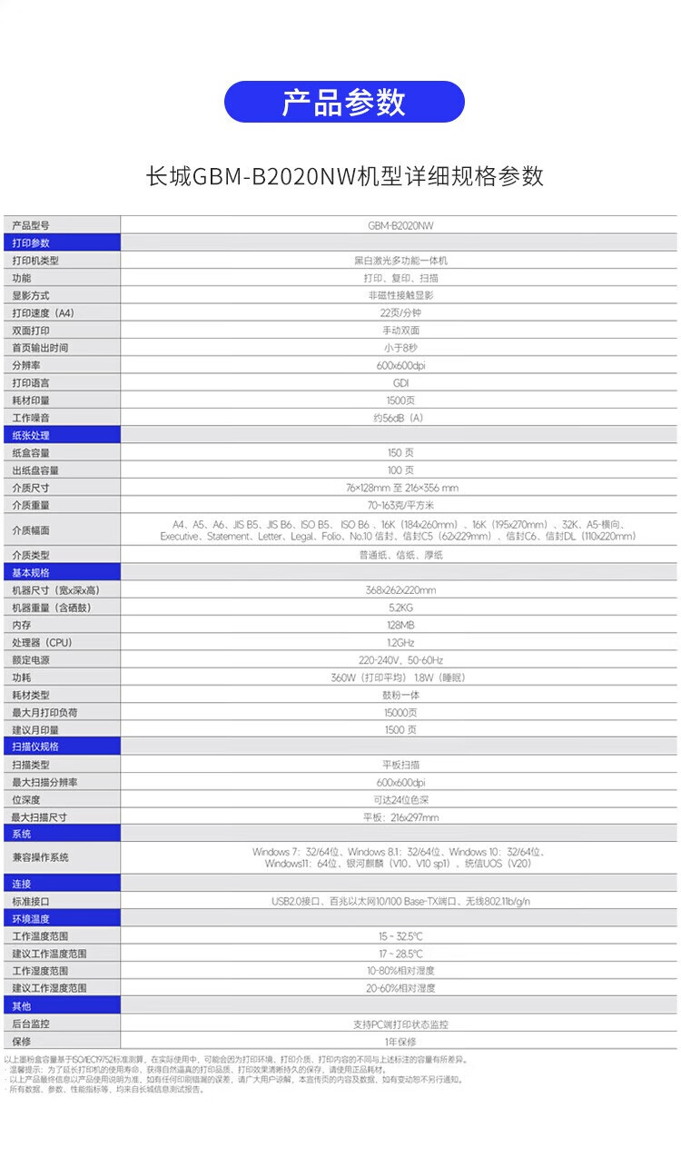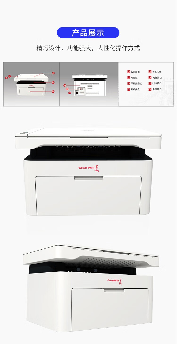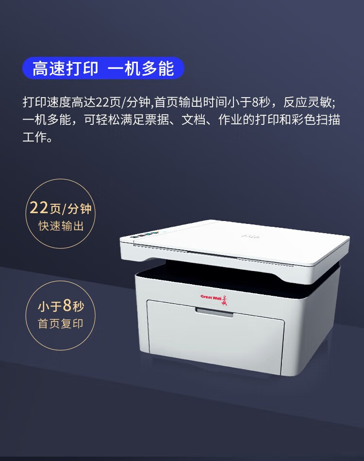 包装清单  :   Great Wall长城GBM-B2020NW A4黑白激光打印机一体机 无线网络打印复印扫描打印机无线一体机国产