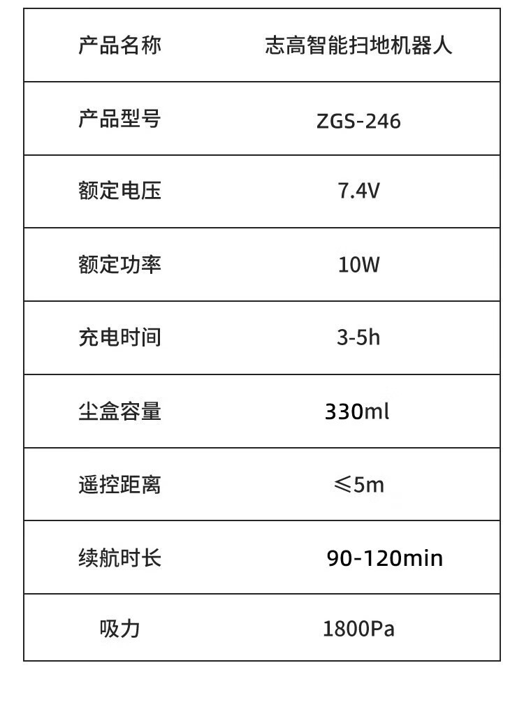包装清单  :   志高/CHIGO ZGS-246 清洗机 扫地机器人 智能全自动扫地机器人 自动回充电、自动扫地、吸尘、拖地、带遥控器、防跌落、智能避让,高效耐用锂电池2000mAh