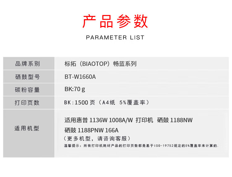 标拓BT-W1660A适用惠普1136w 1008a/w打印机硒鼓1188nw硒鼓1188pnw 带芯片硒鼓 1500页