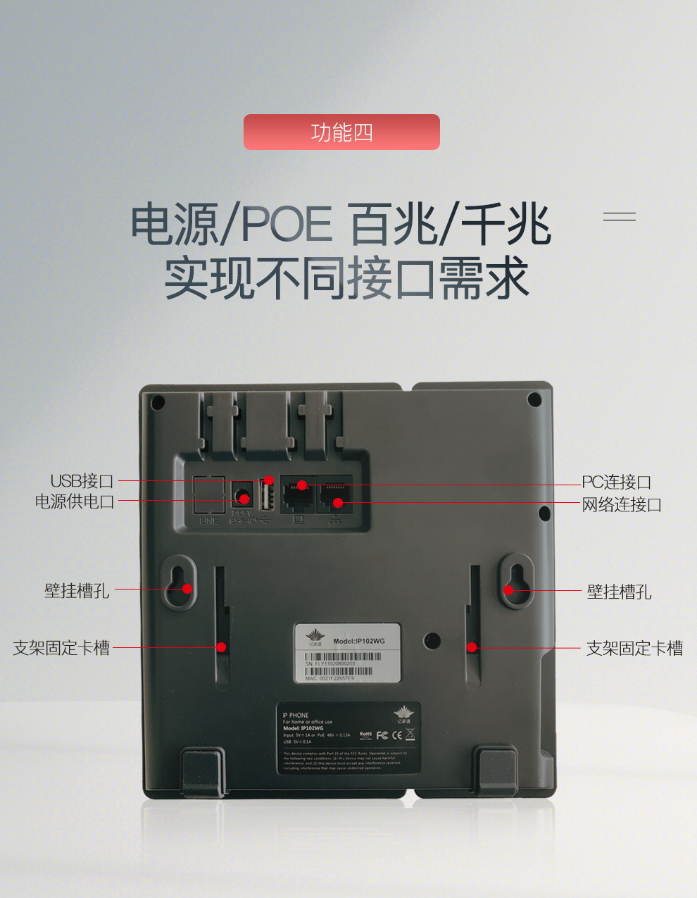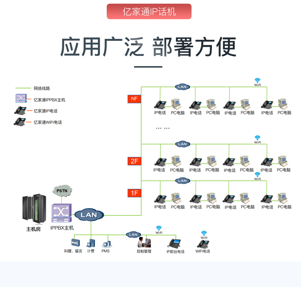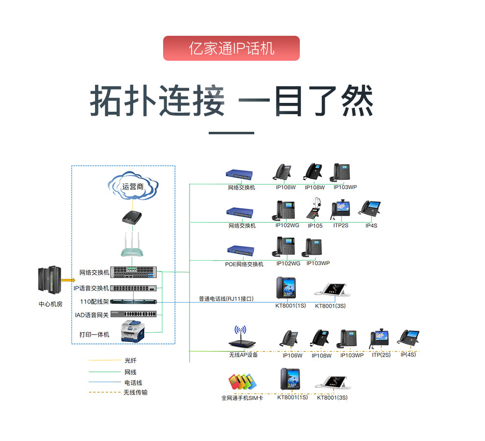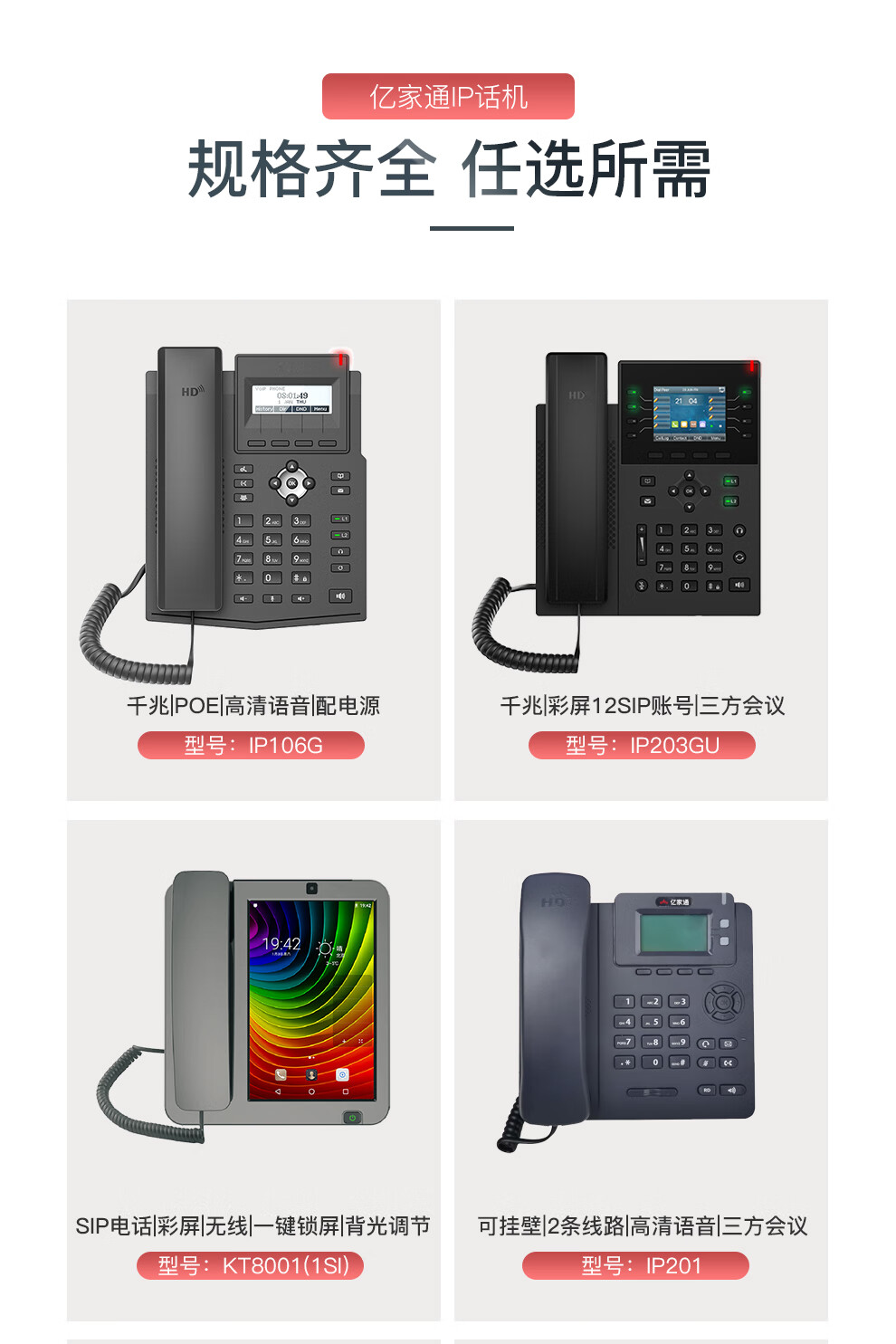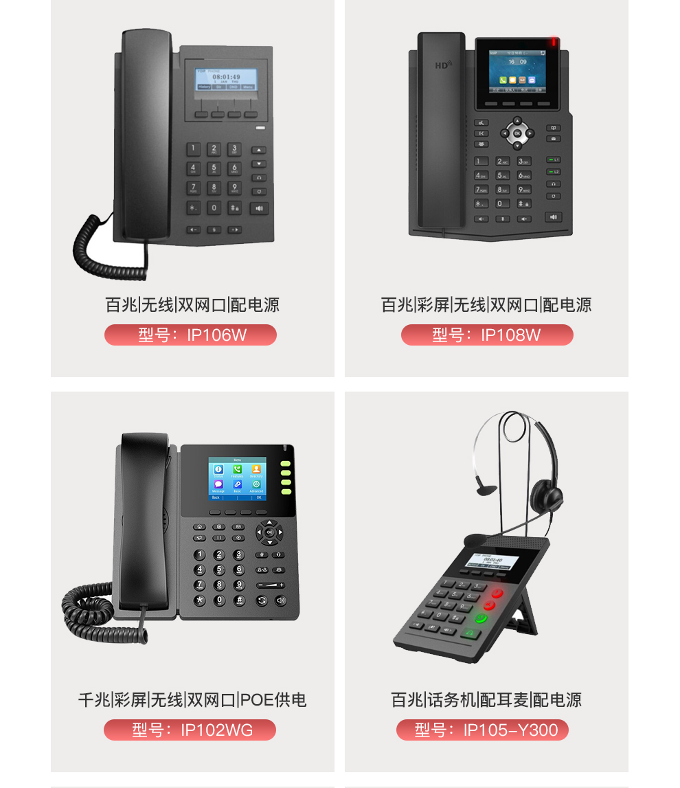 亿家通IP电话机座机 IP语音交换机专用电话机 集团酒店电话 无线wifi电话机 SIP话机 IP201(百兆+背光屏+有线电源)