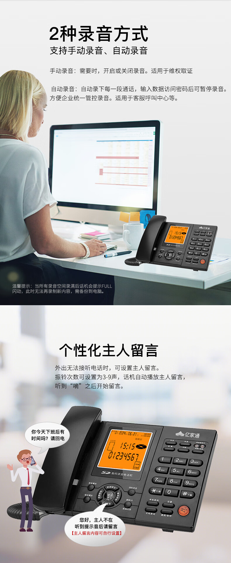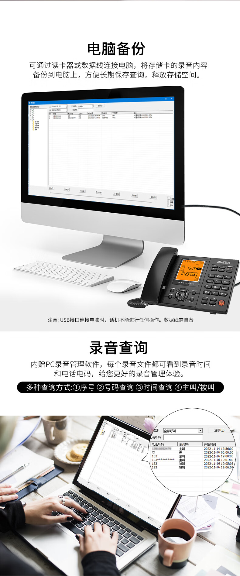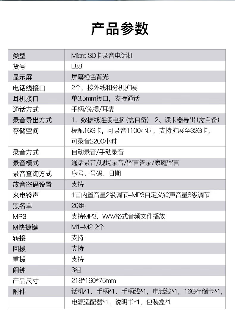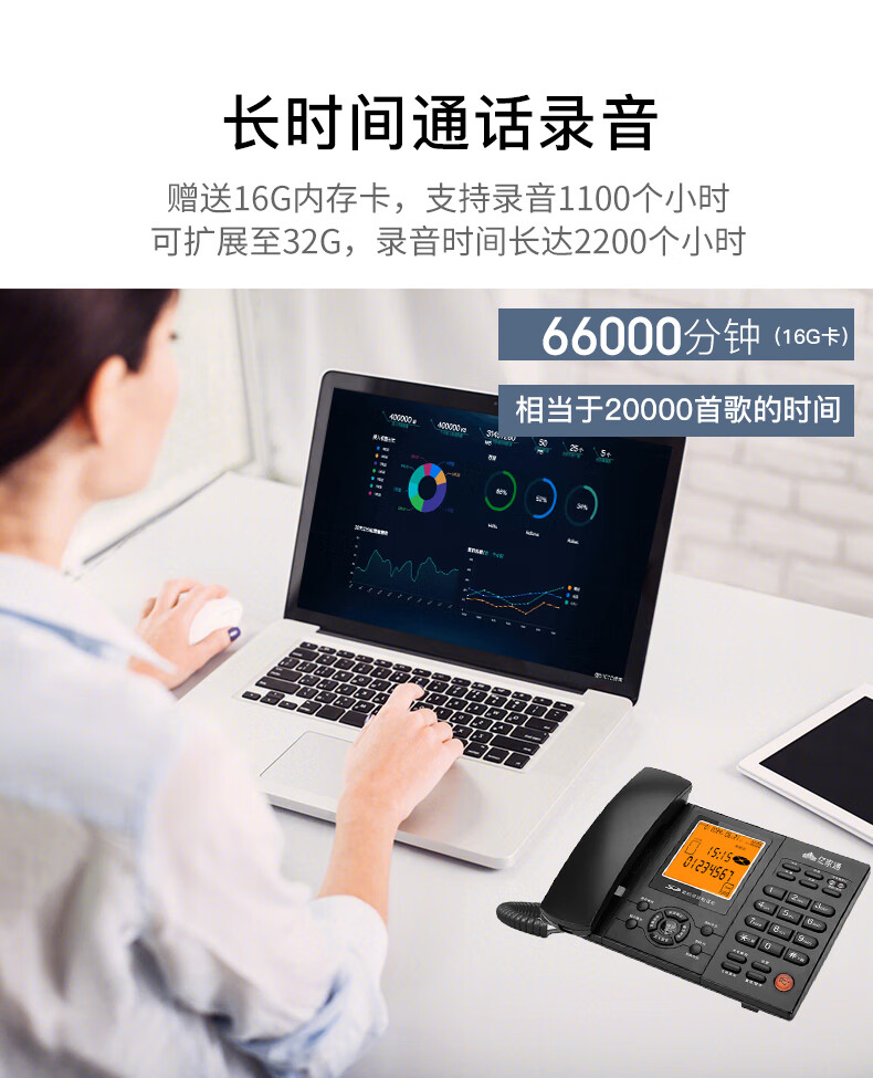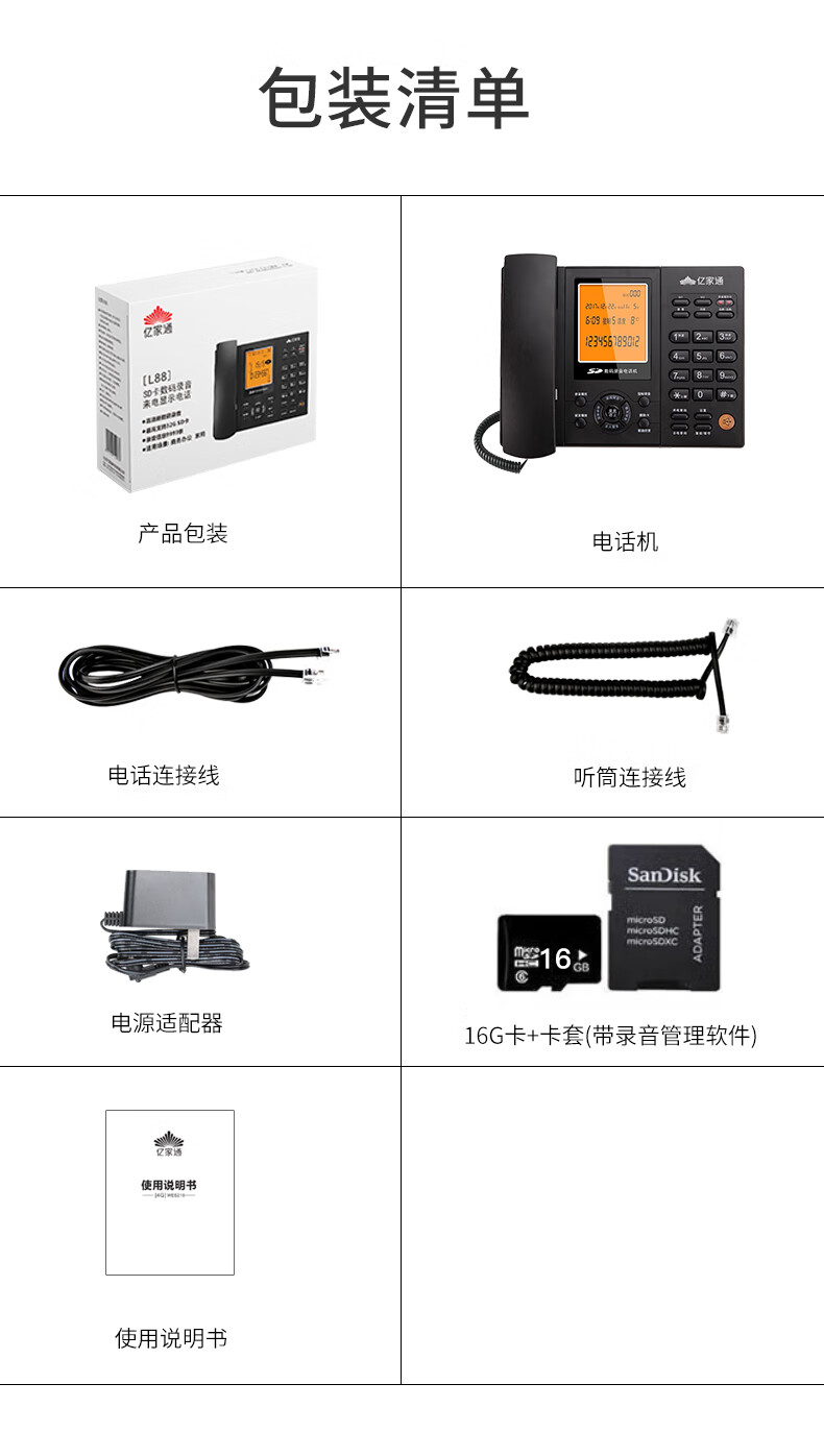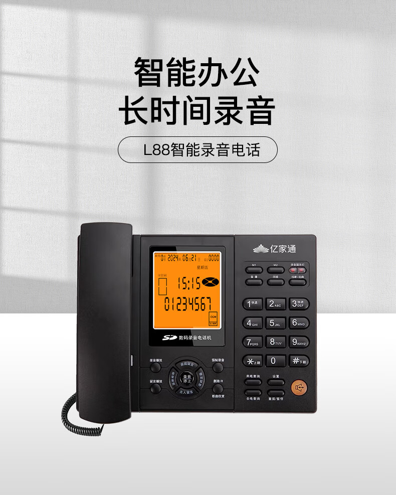 亿家通 录音电话机L88固定座机 办公商用 自动手动录音 电脑备份 电销客服呼叫中心 含16G存储卡