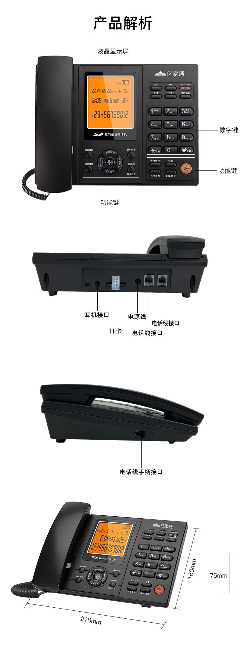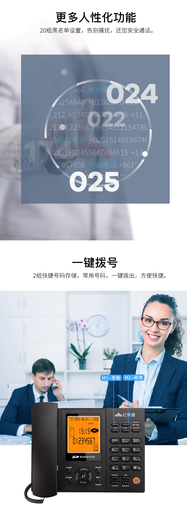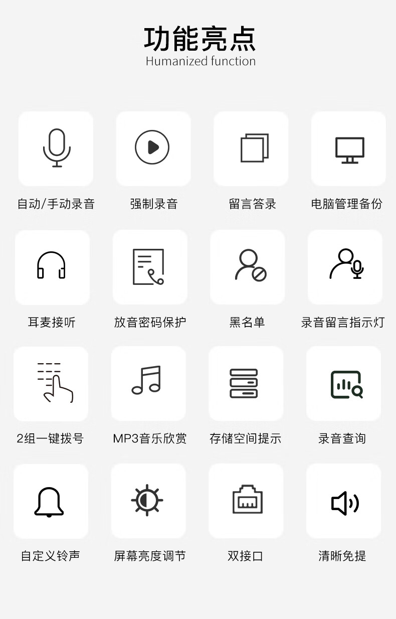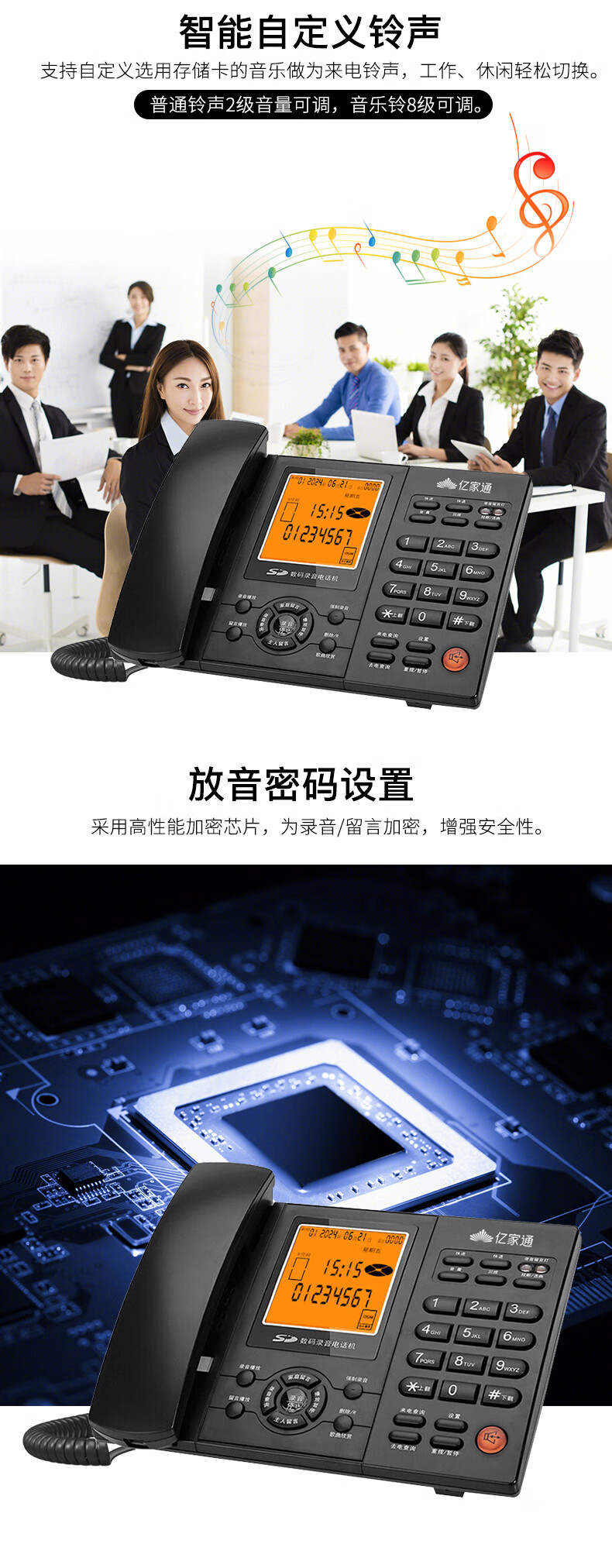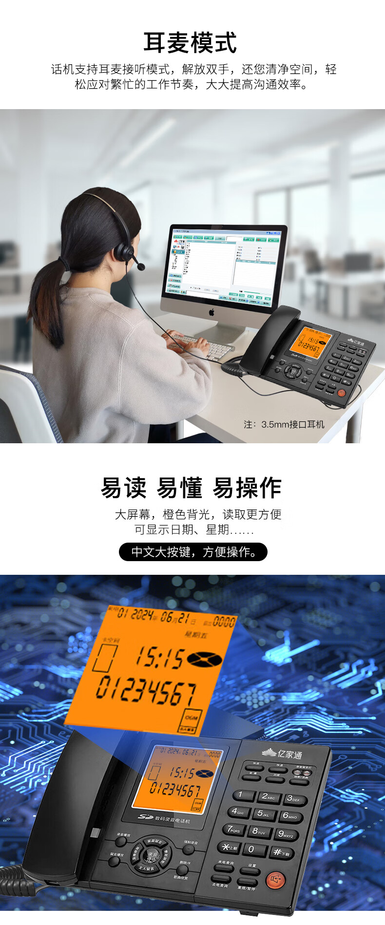 亿家通 录音电话机L88固定座机 办公商用 自动手动录音 电脑备份 电销客服呼叫中心 含16G存储卡