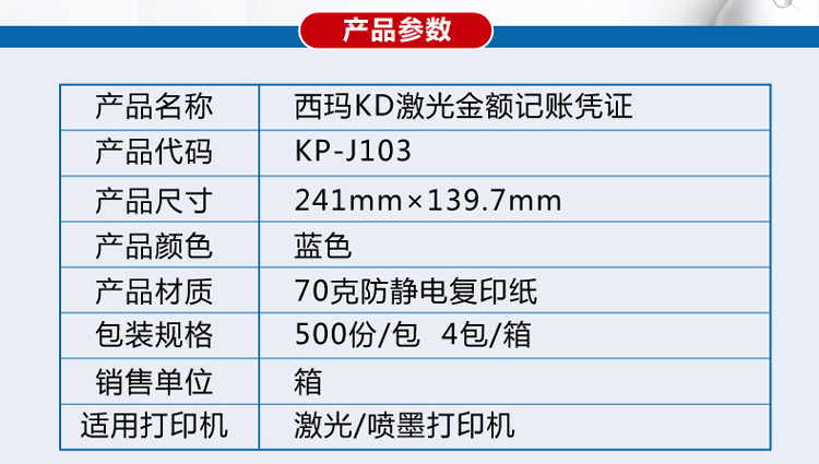 包装清单  :   西玛KD激光金额记账凭证4包/箱