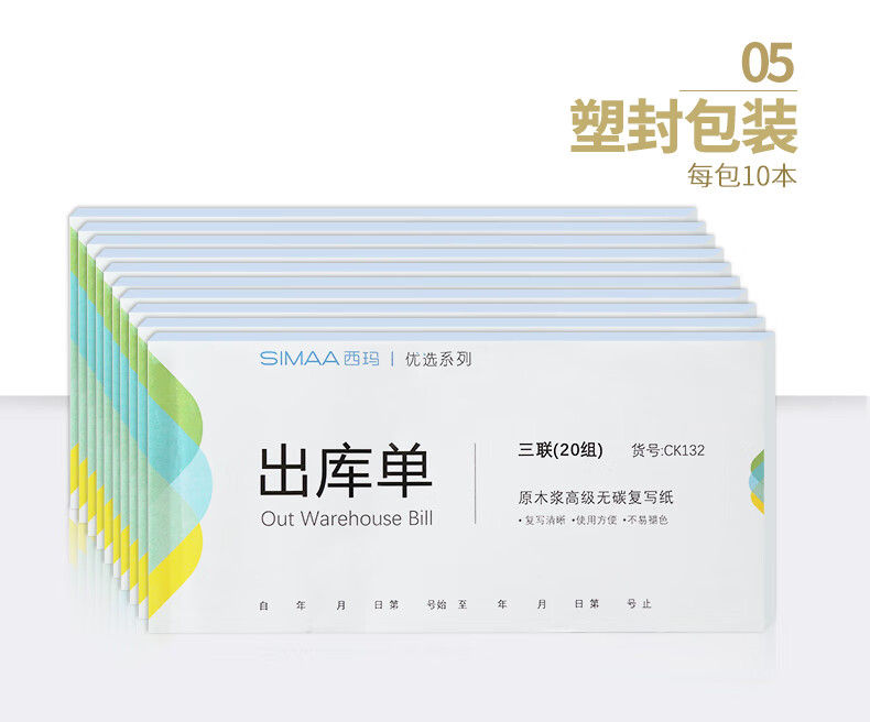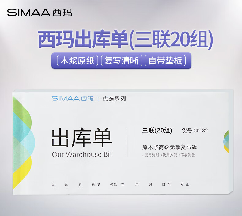 西玛【超级爆款】CK132三联出库单54K 175×83mm 20组10本装 优选时尚版 无碳复写销售出库出货单据
