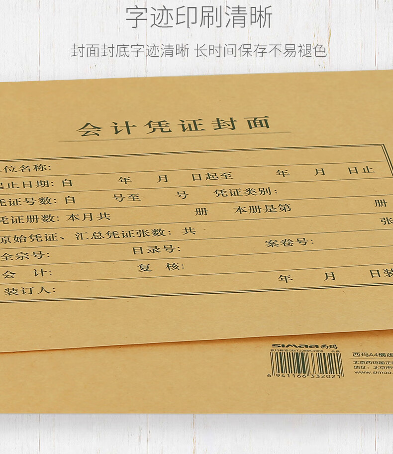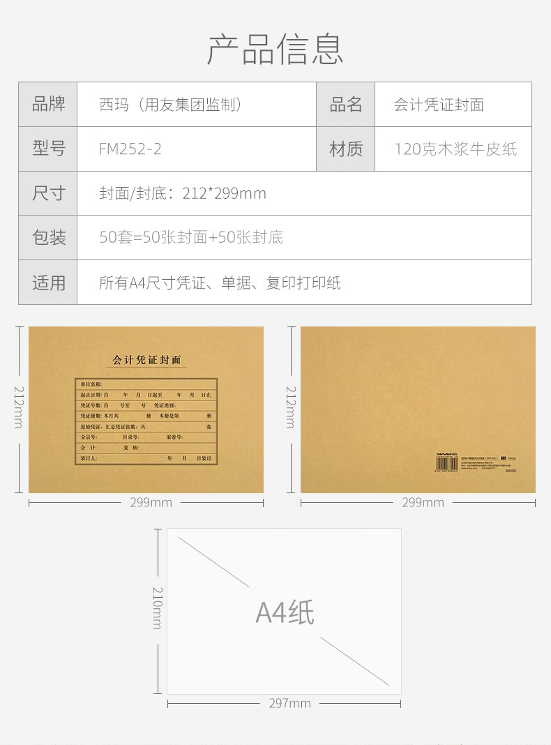 SIMAA西玛FM252-2 A4凭证封面横版财务会计记账凭证封面封皮横版凭证封面 A4凭证封面-横版 120克 50套/包