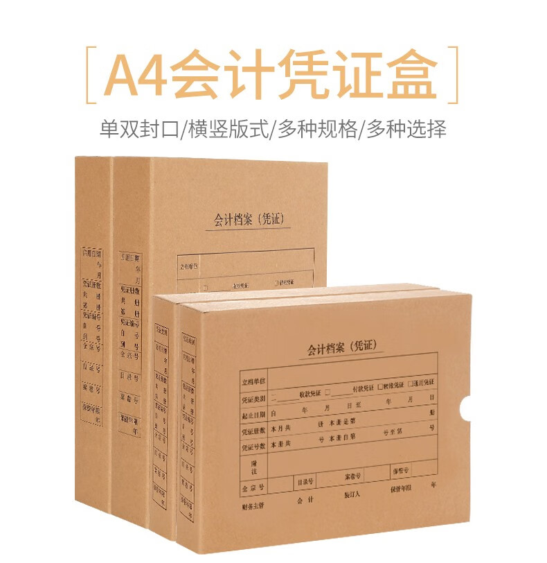 西玛/SIMAA HZ353 档案盒 A4规格会计凭证盒 加厚牛皮纸横竖版凭证盒 财务用品会计档案盒 HZ353-单封口