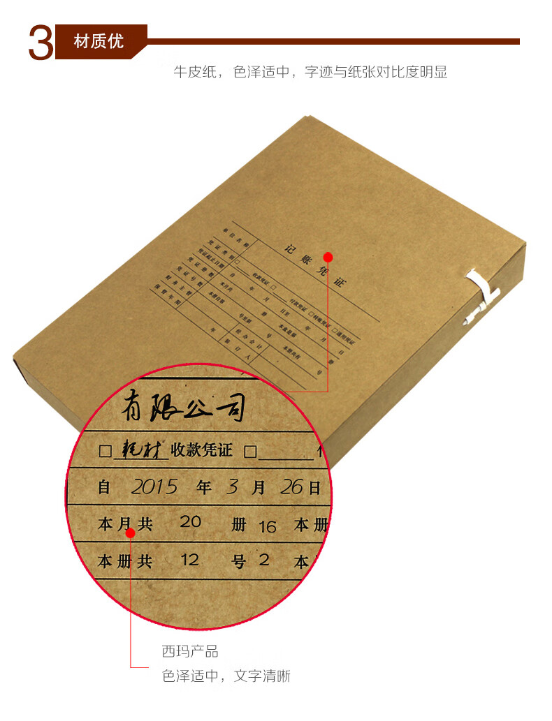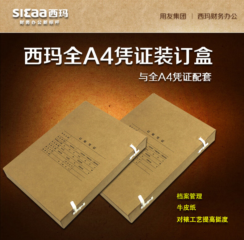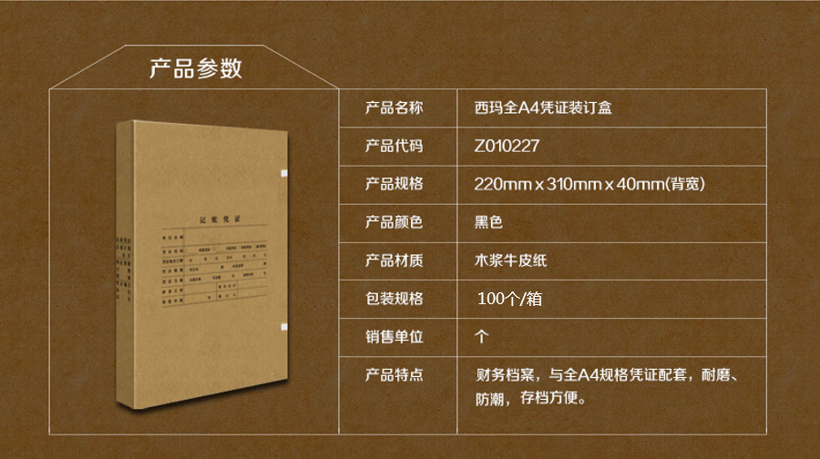 西玛/SIMAA Z010227 档案盒 A4凭证装订盒 674克进口牛卡竖版财务档案盒 Z010227 A4凭证盒-双封口