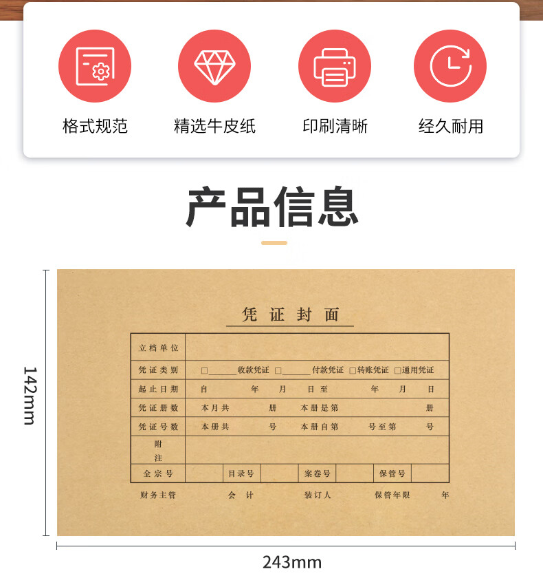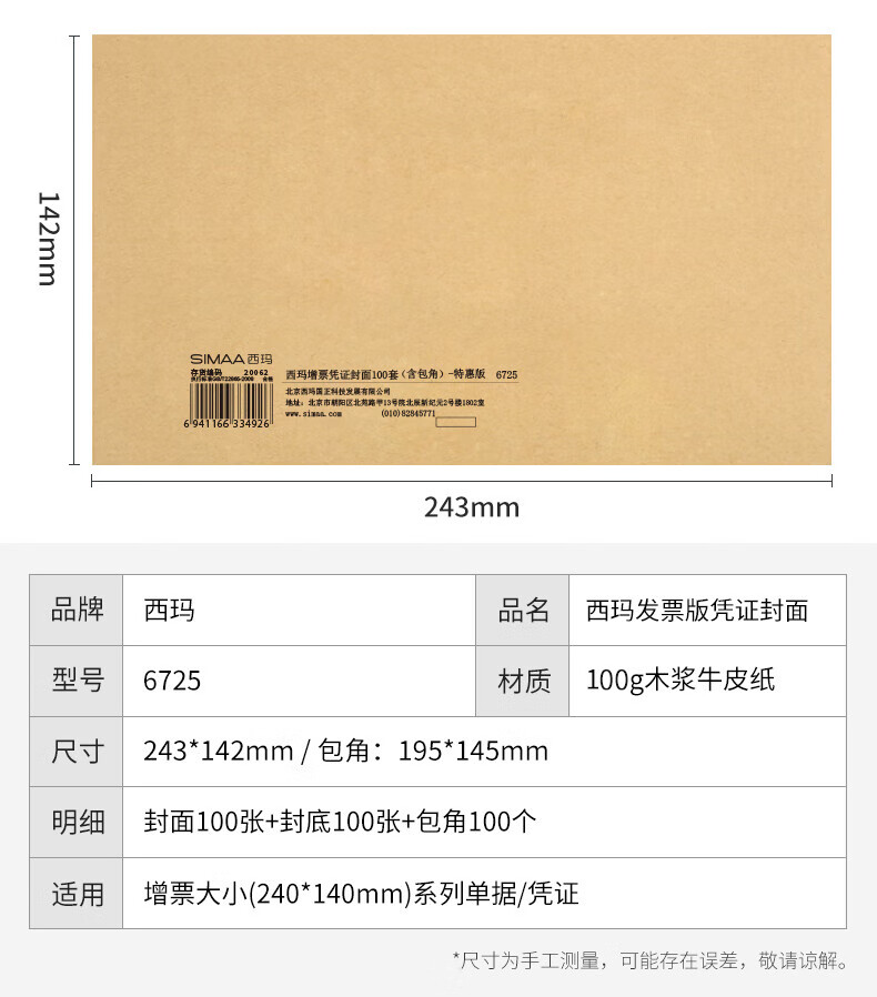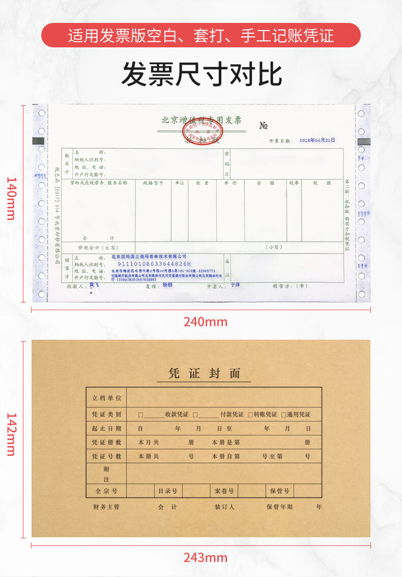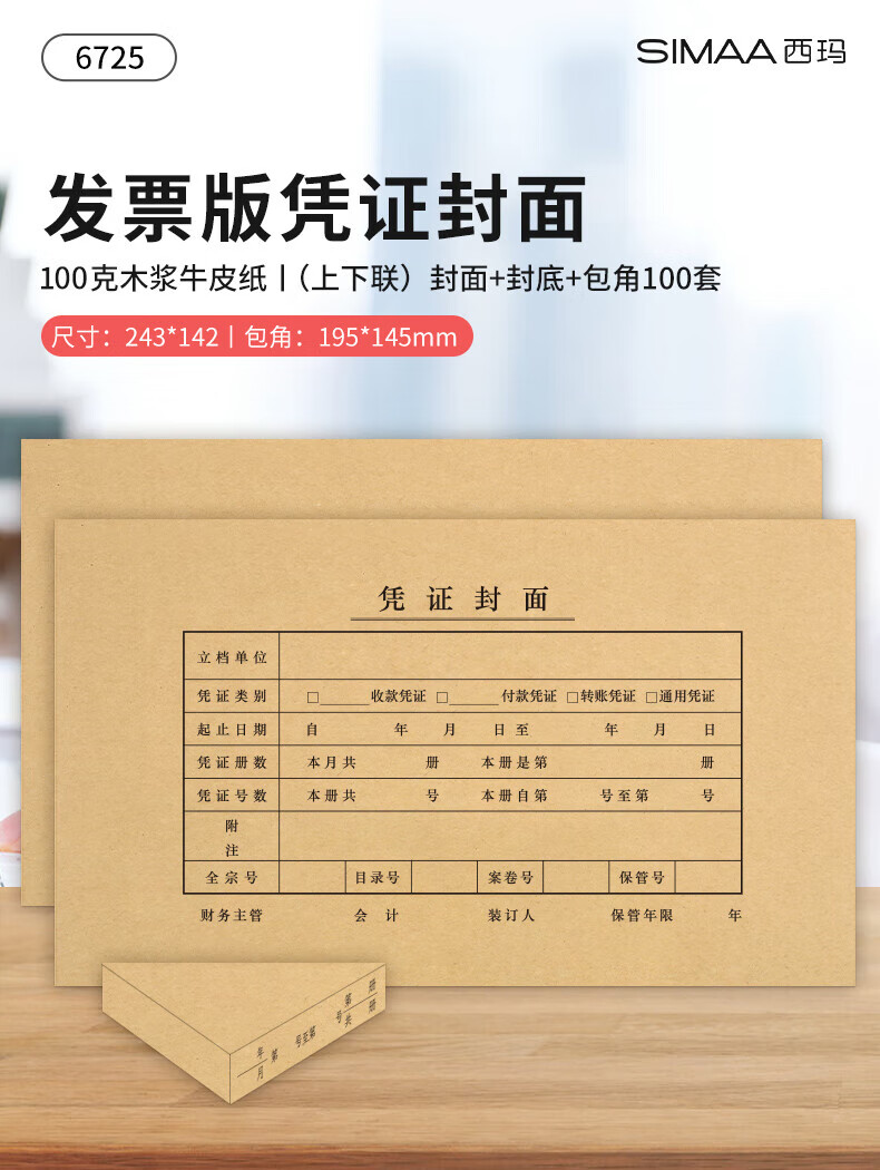 西玛(SIMAA)【超级爆款】发票版记账凭证封面FM121B-100 会计凭证封皮100套(封面 封底 包角)243*142mm