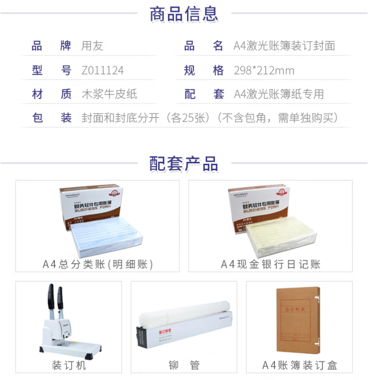 用友表单用友会计A4账簿装订封面298*212mm账本凭证封皮25套/包