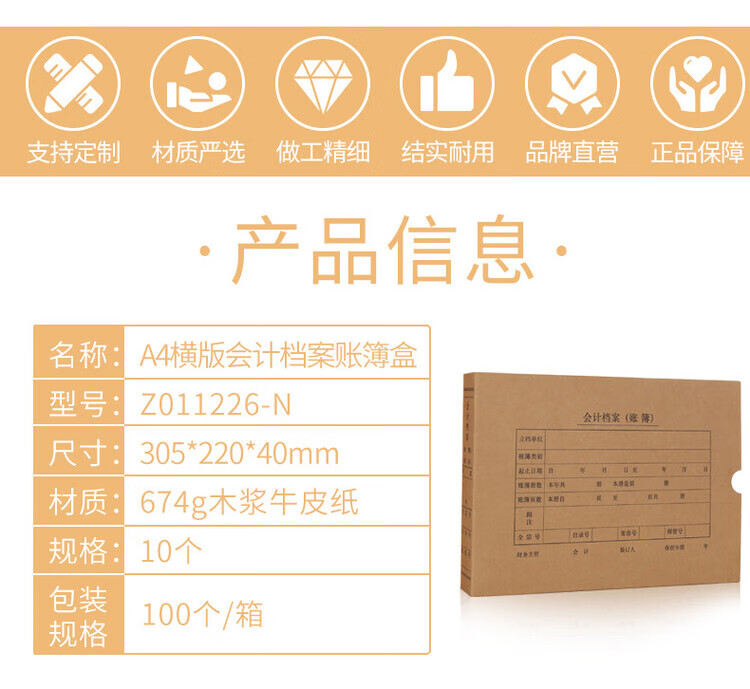 西玛 账簿盒a4账簿封面盒账簿会计档案盒用友西玛账簿Z011226-N 黑字A4横版账簿盒 305*220*40mm