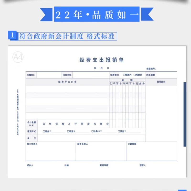 西玛A4政务经费支出报销单差旅费报销单据粘贴单凭证盒单封口 A4报销单据粘贴单8813(5本)
