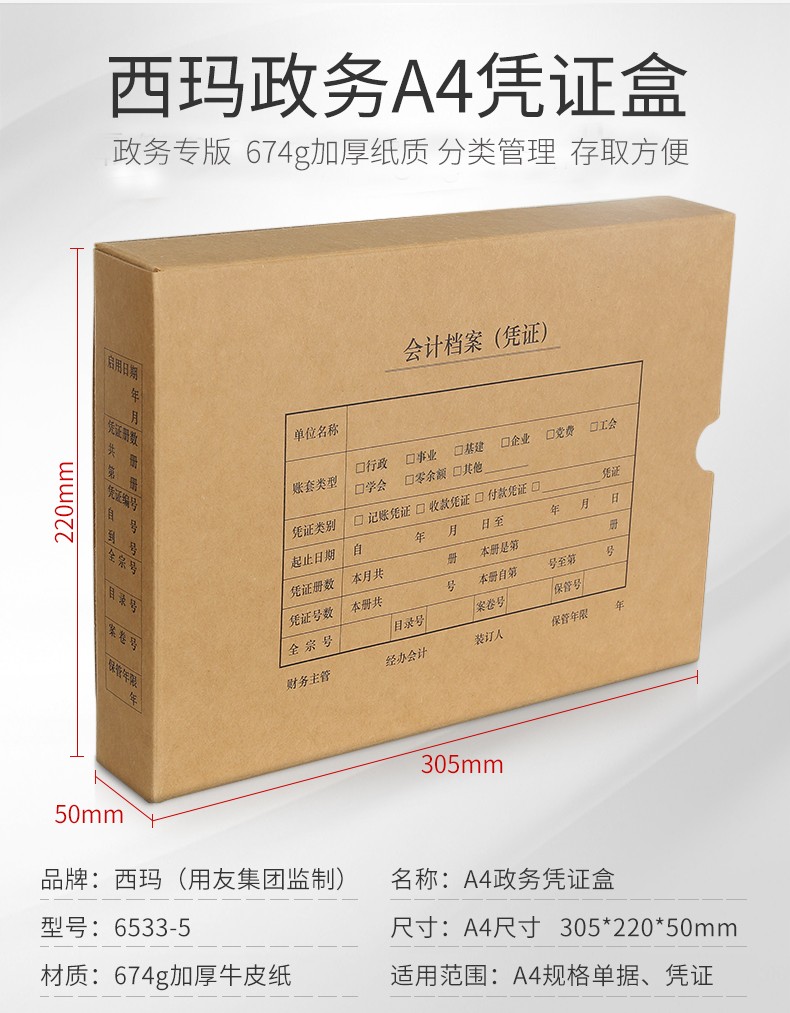 西玛(SIMAA)政务A4凭证盒 单封口进口674g牛卡纸305*220*50mm